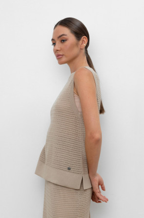 Вязаная ажурная майка. Состав 50% хлопок, 50% акрил. Благодаря акрилу в составе изделие не пилингуется.
