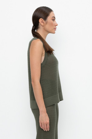 Вязаная ажурная майка. Состав 50% хлопок, 50% акрил. Благодаря акрилу в составе изделие не пилингуется.