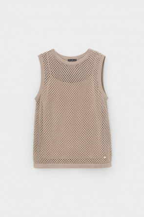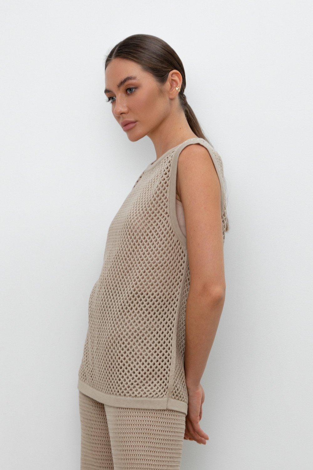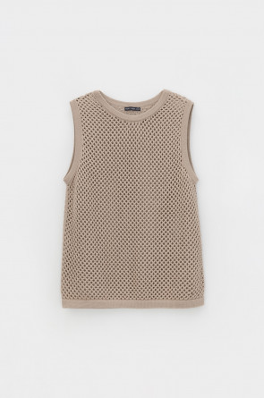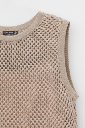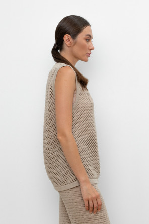 Вязаная ажурная майка. Состав 50% хлопок, 50% акрил. Благодаря акрилу в составе изделие не пилингуется. В комплекте внутренняя майка из супрема с лайкрой.