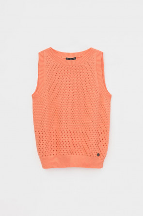 Укороченная вязаная ажурная майка. Состав 68% полиэстер, 32% вискоза.