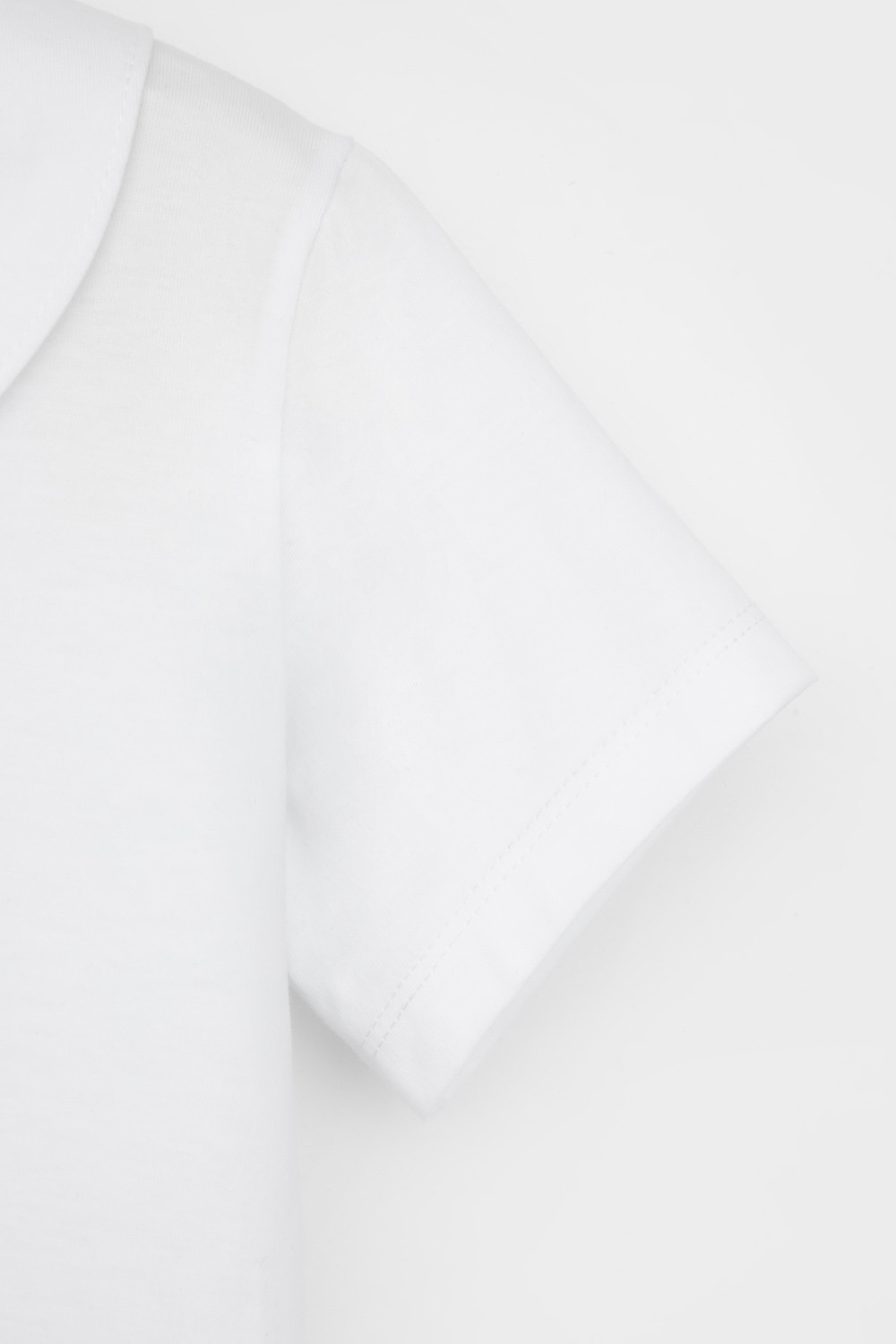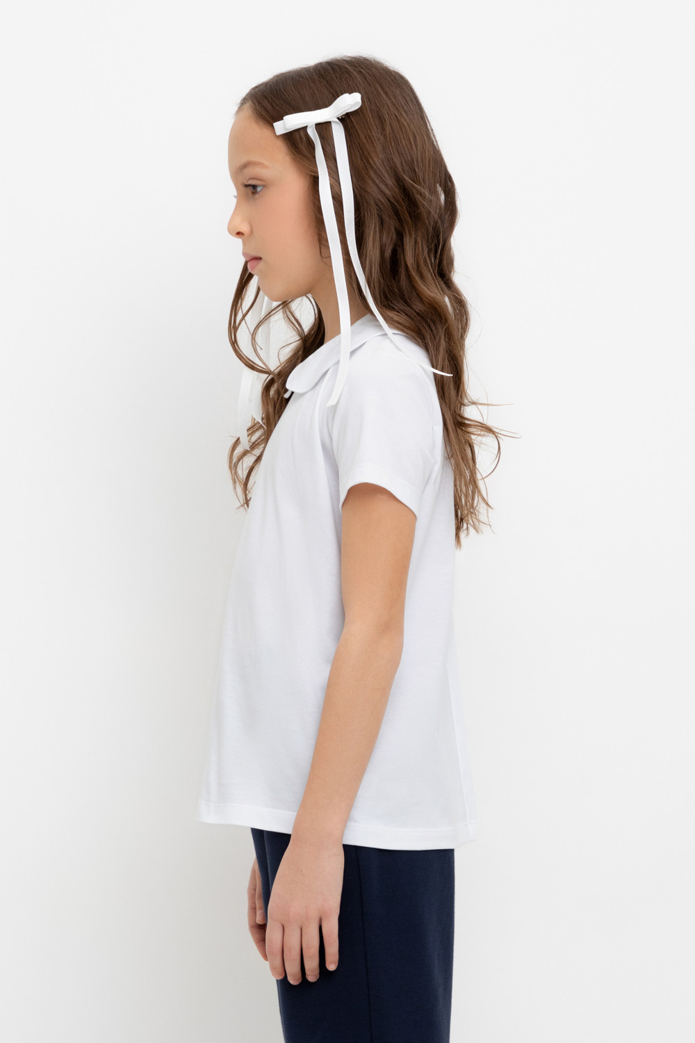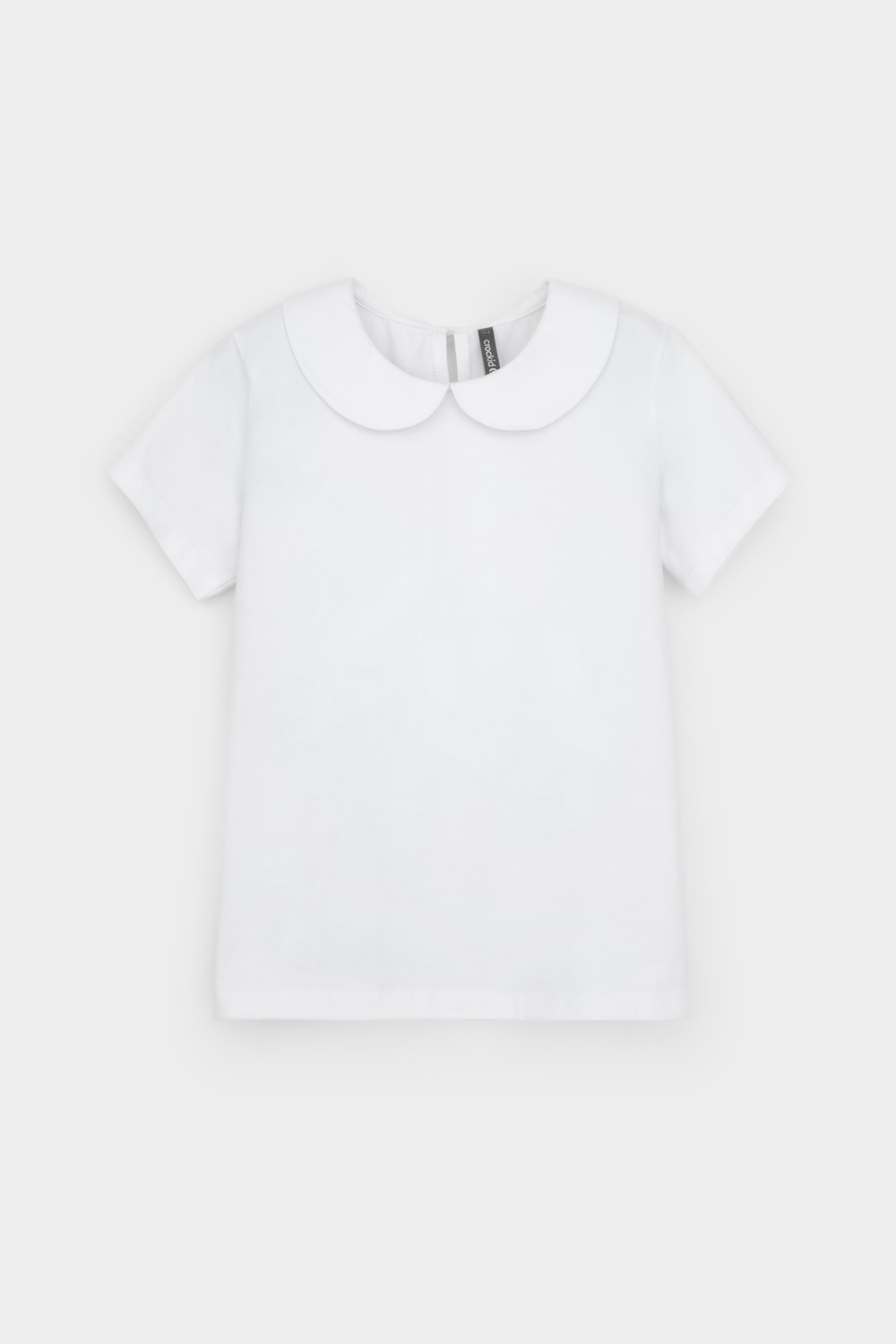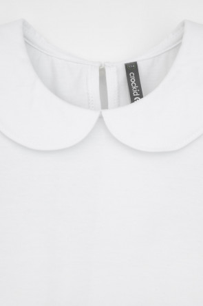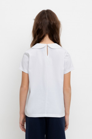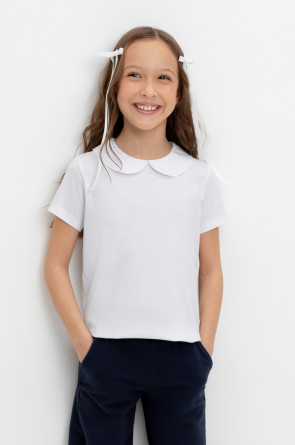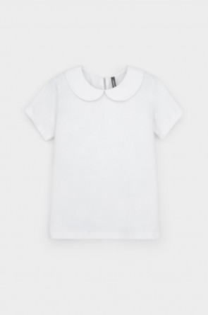 Блузка школьная для девочки с воротником из трикотажа супрем. Застёгивается на пуговицу и петельку из шляпной резины. Рукава и низ изделия обработаны плоскими швами.