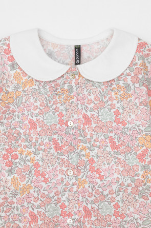 Блузка на кнопках для девочки из мягкого высококачественного трикотажа супрем. Застёгивается на кнопки. Модель со спущенным плечом.