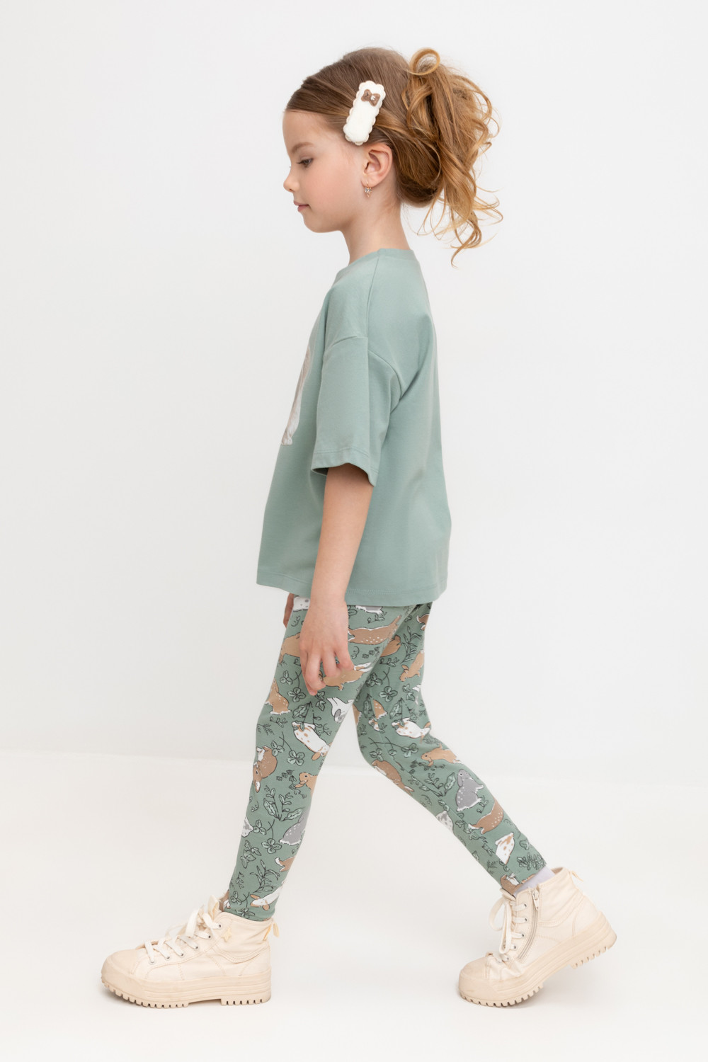 Лосины для девочки из эластичного трикотажного полотна. Оригинальная набивка выполнена из стойких текстильных гипоаллергенных красителей.