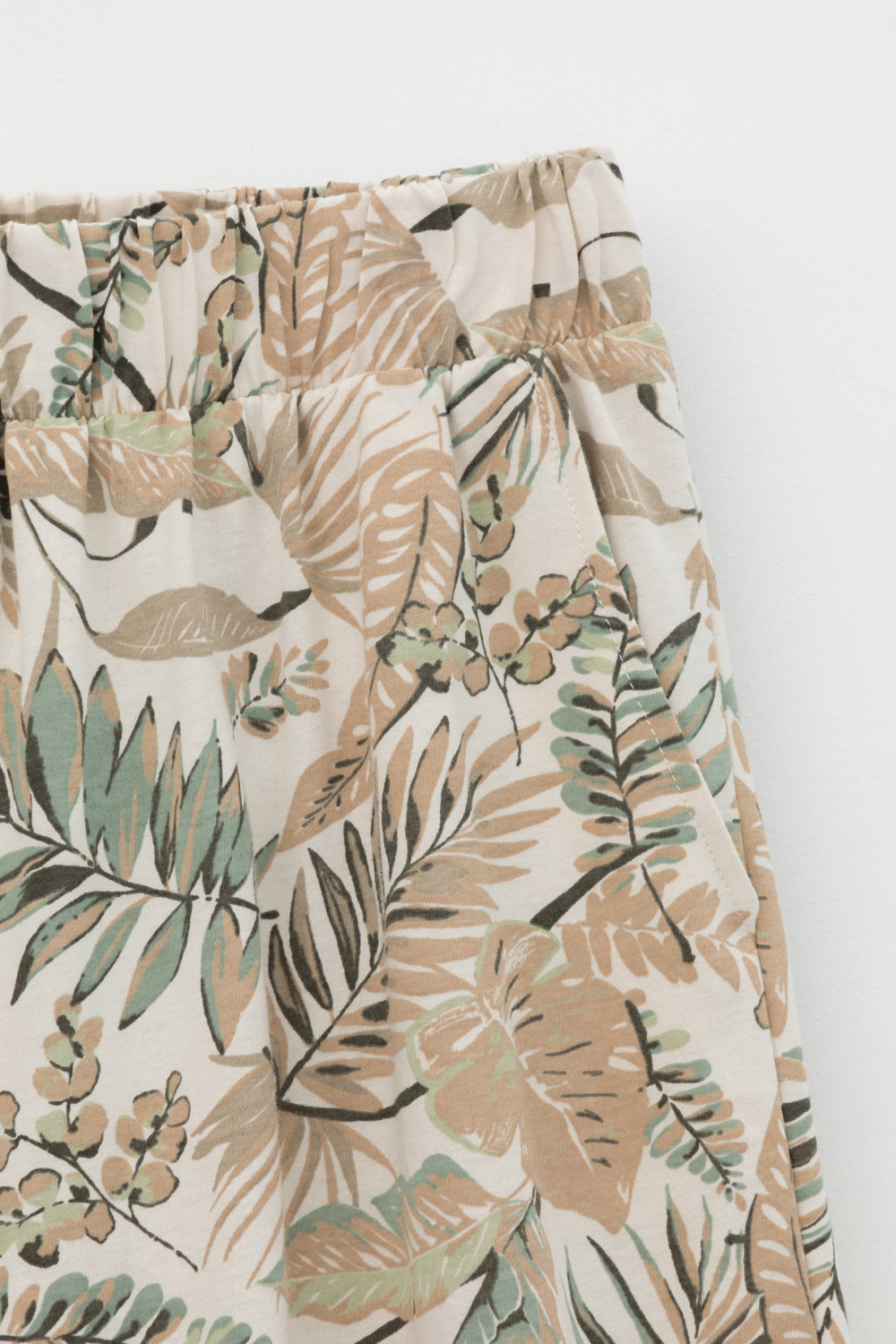 Лёгкие комфортные брюки из набивного трикотажа супрем. Модель с поясом на резинке и боковыми карманами. Низ изделия обработан плоскими швами. Гладкий материал приятен к телу, не теряет форму и позволяет коже дышать.