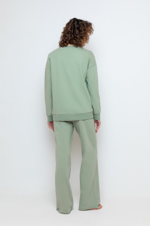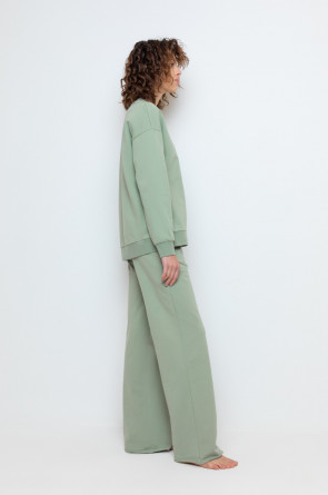 Комфортные широкие брюки на резинке из однотонного футера петли. Регулируются по ширине с помощью шнурка. По бокам удобные карманы. Низ обработан плоскими швами с открытым срезом. Все трикотажные полотна производятся в соответствии с нормами сертификата ЭкоТекс. Сделано в России