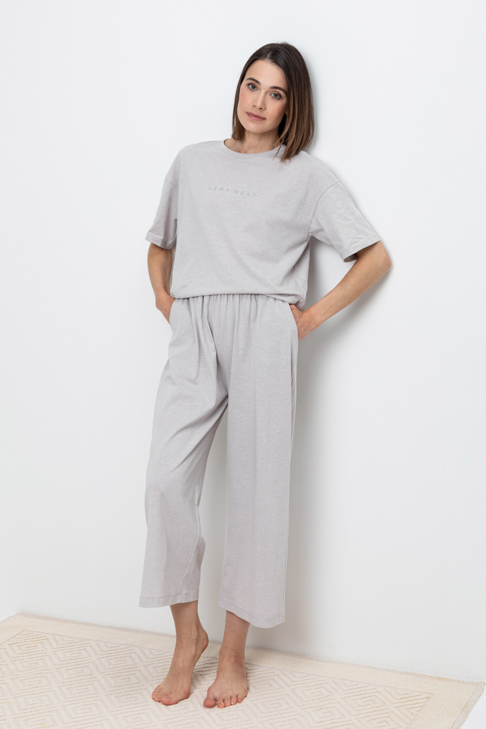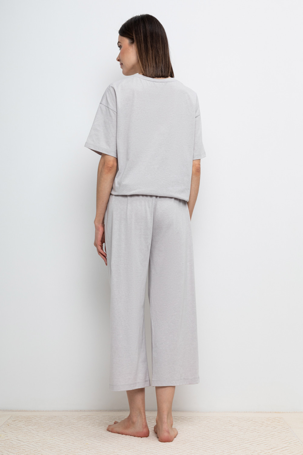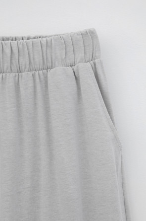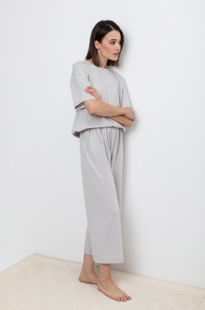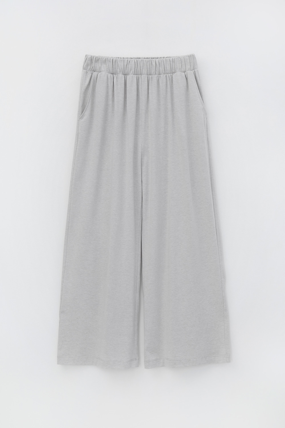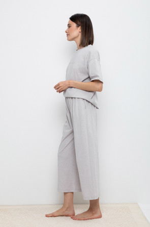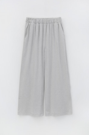 Лёгкие комфортные брюки из меланжевого трикотажа. Модель с поясом на резинке и боковыми карманами. Низ изделия обработан плоскими швами. Гладкий материал приятен к телу, не теряет форму и позволяет коже дышать.