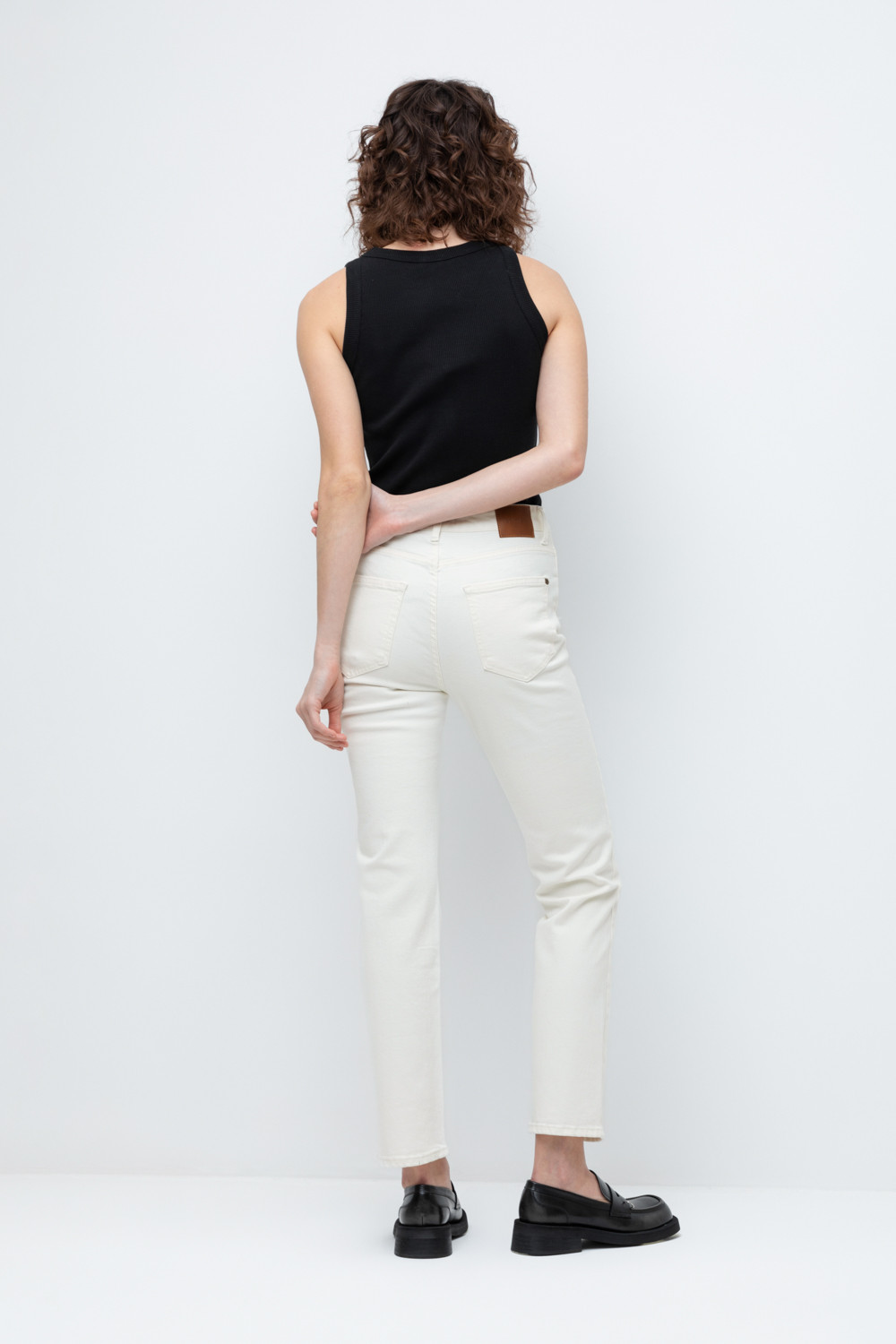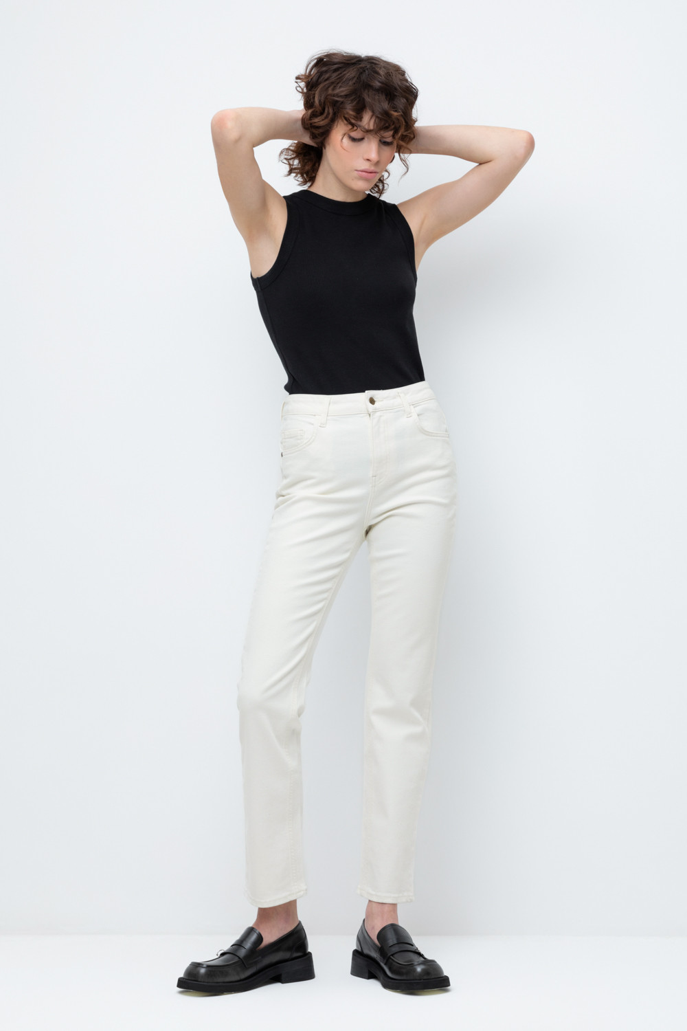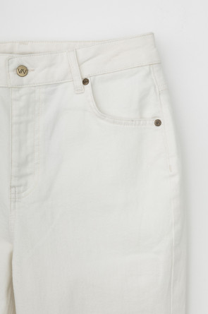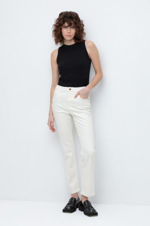 Женские джинсы из мягкого стрейч денима прямого кроя с завышенной линией талии. Модель с классическими 5 карманами и фирменной нашивкой из эко кожи Very Neat.