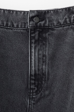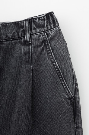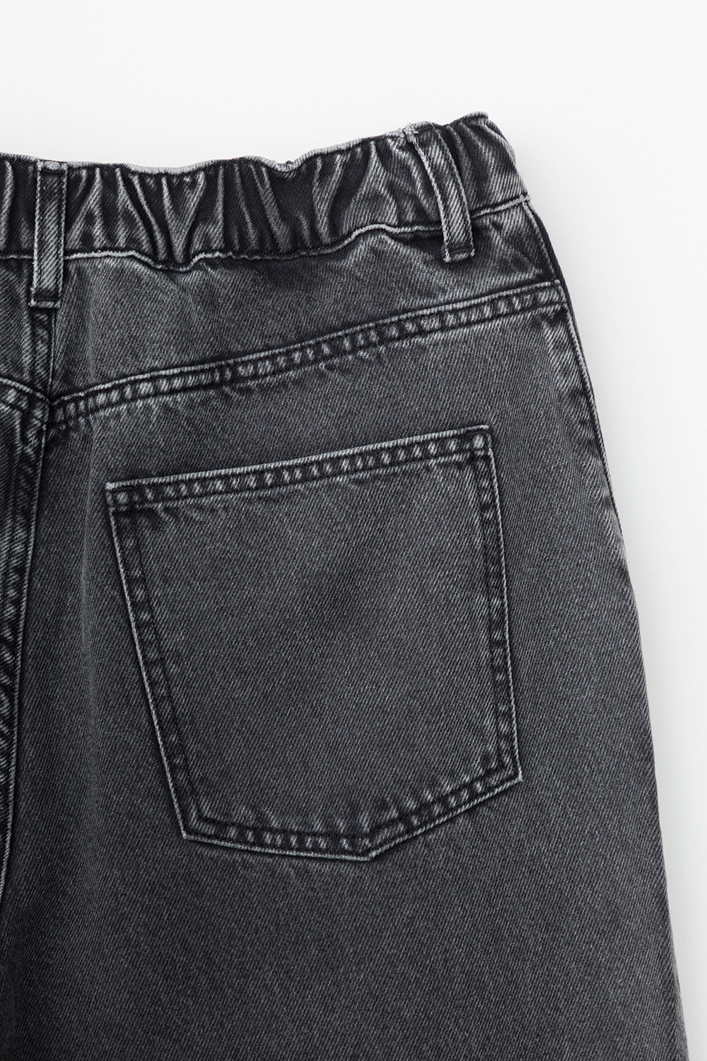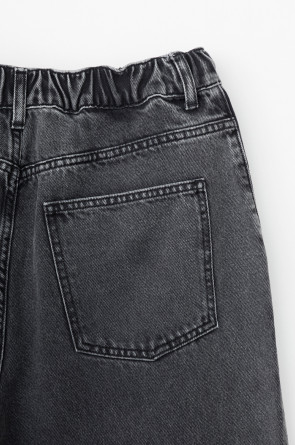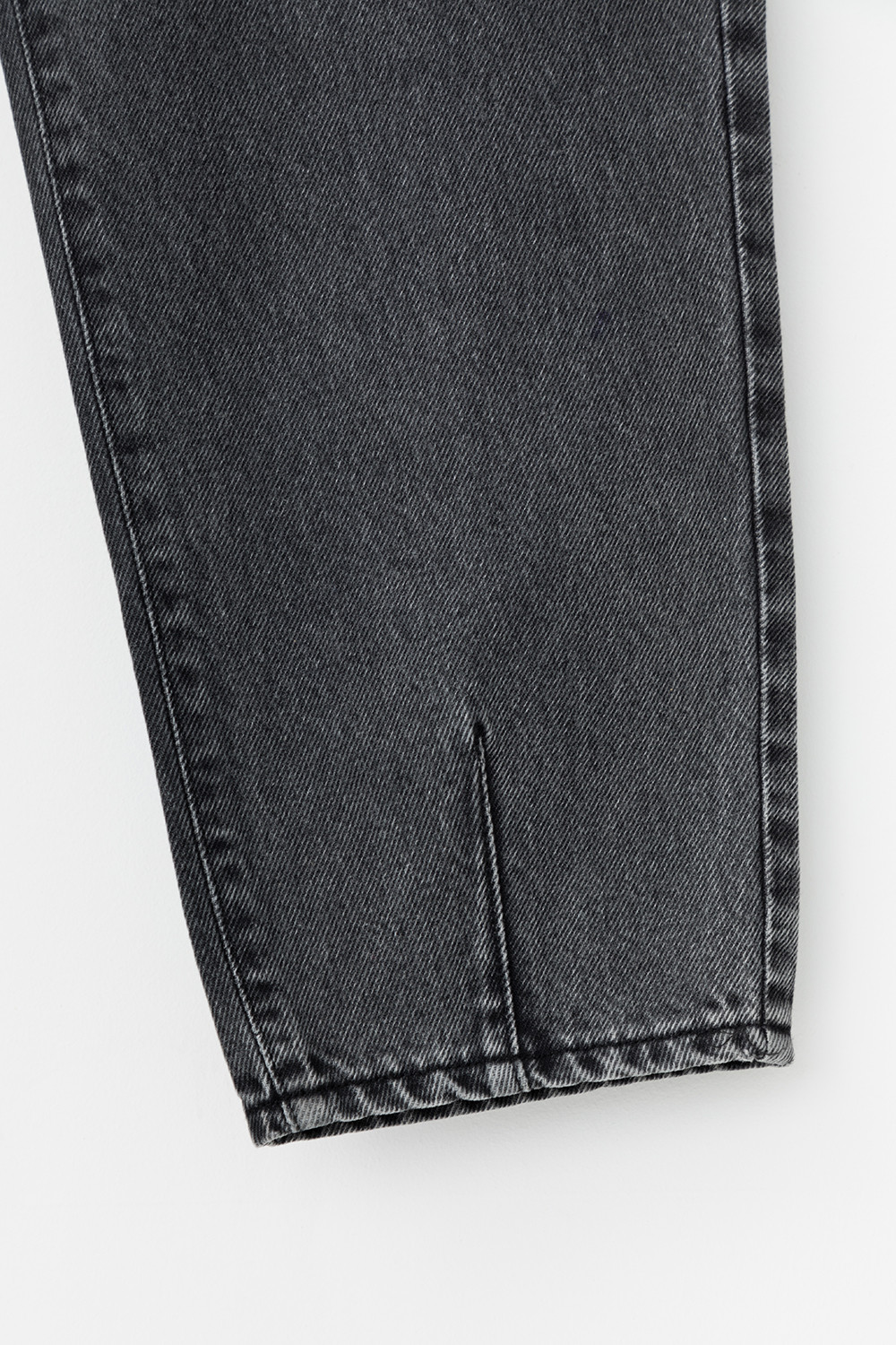 Женские джинсы из 100% хлопка свободного кроя, зауженные книзу, с поясом на резинке и завышенной линией талии. Модель с классическими 5 карманами и подворотами.