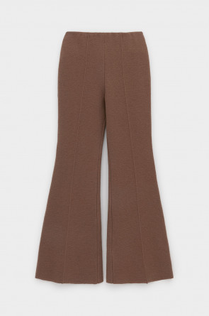 Удобные вязаные брюки со стрелкой из 100% шерсти. Шерсть в составе хорошо сохраняет тепло. Пояс на резинке.