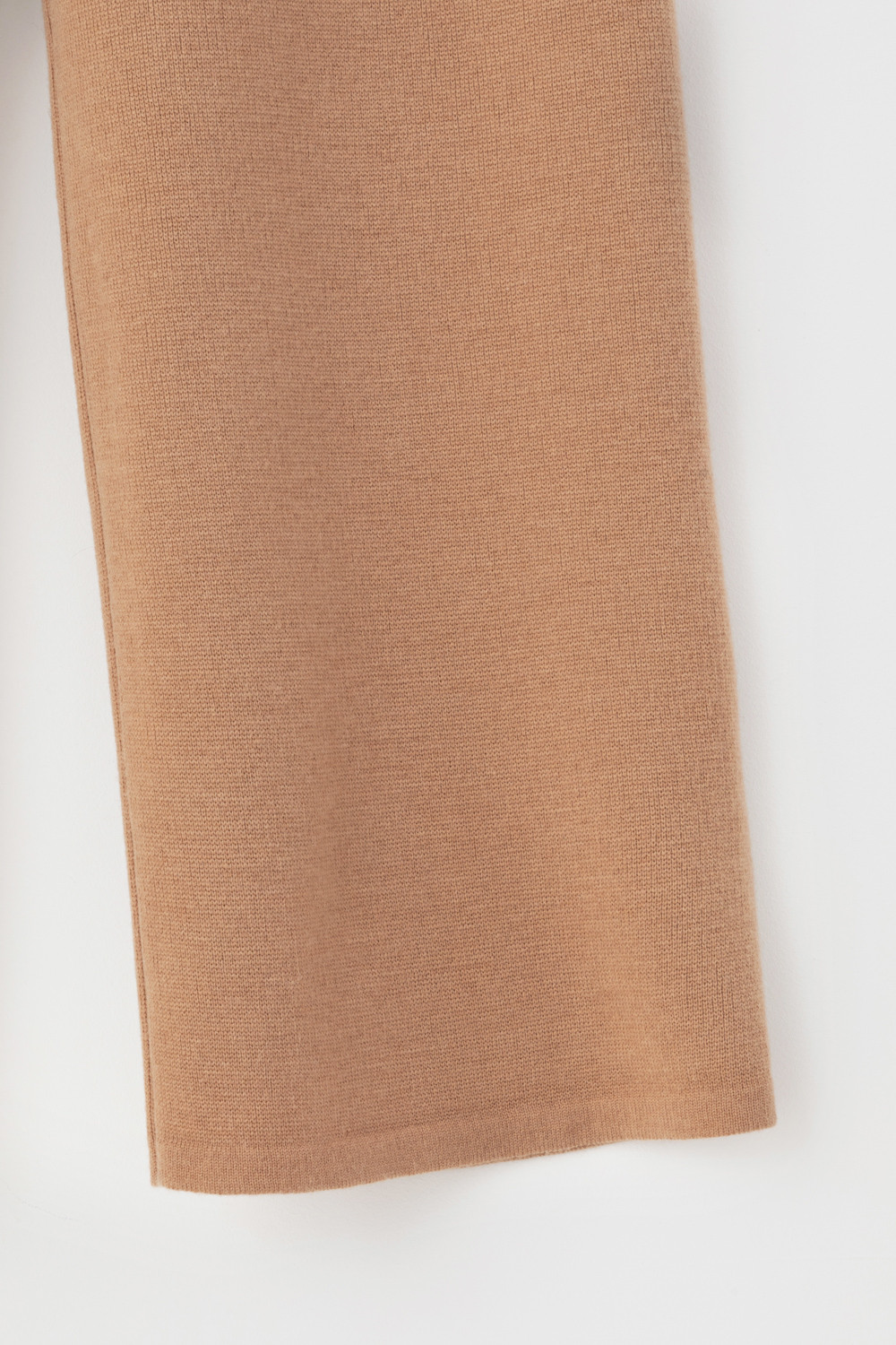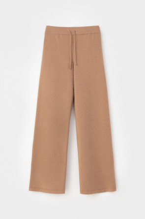 Пояс регулируется вязаным шнуром в тон брюк. Плотная фактура вязания согревает и сохраняет форму во время носки.