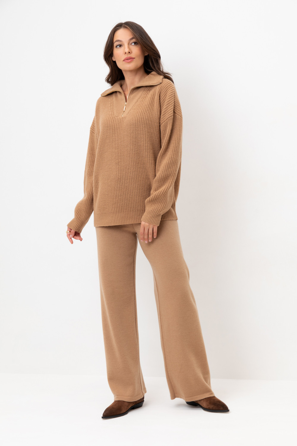 Удобные вязаные брюки прямого силуэта. Выполнены из мягкой полушерстяной пряжи. Шерсть в составе сохраняет тепло, а благодаря волокнам акрила изделие мягкое и дольше сохраняет форму.