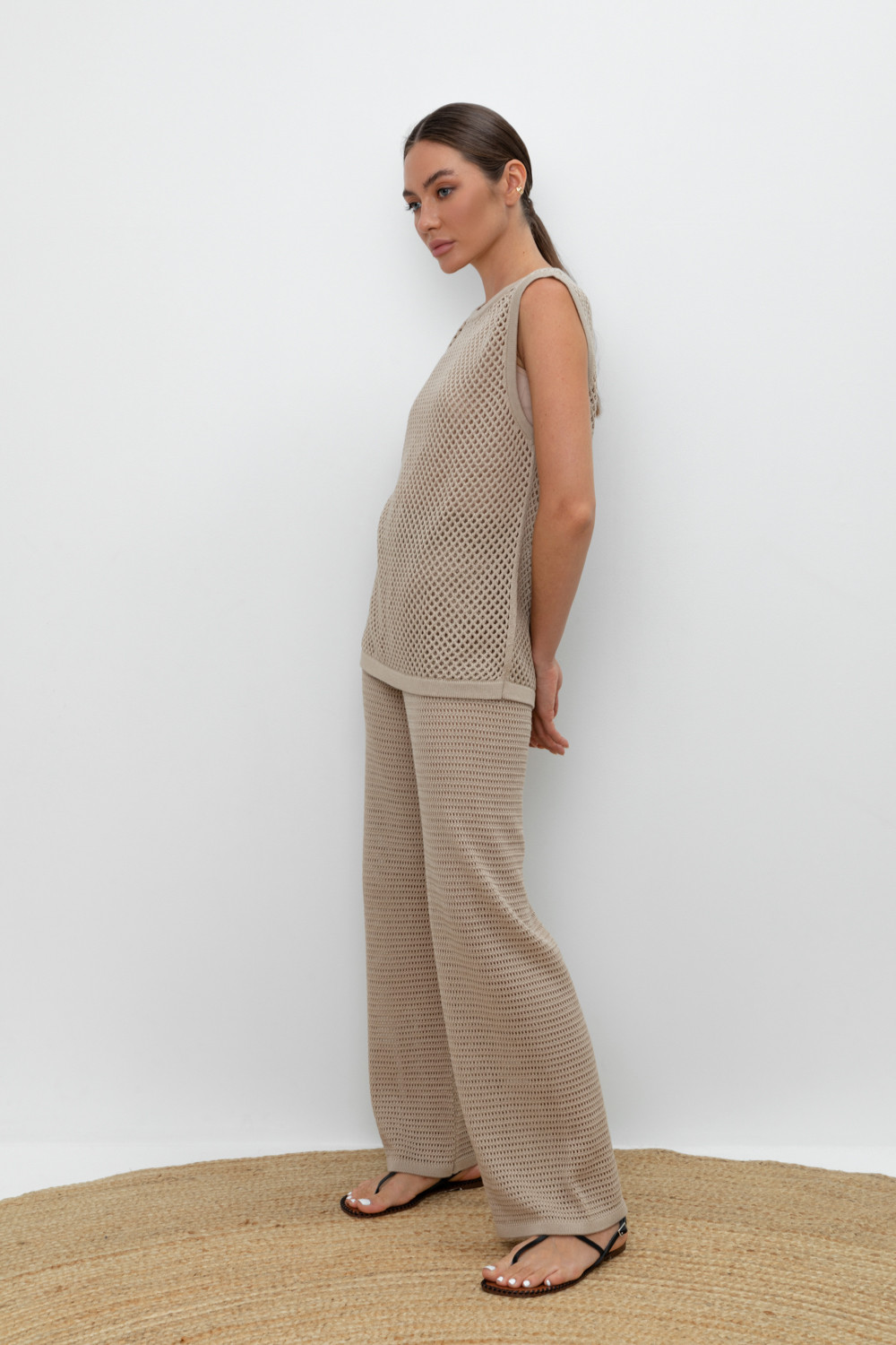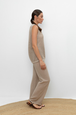 Вязаные ажурные свободные брюки с подкладом. Состав 50% хлопок, 50% акрил. Благодаря акрилу в составе изделие не пилингуется.