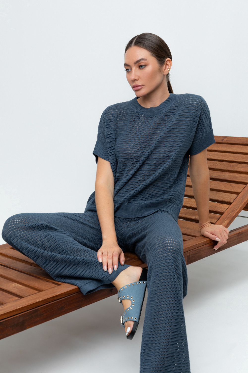 Вязаные ажурные свободные брюки с подкладом. Состав 50% хлопок, 50% акрил. Благодаря акрилу в составе изделие не пилингуется.