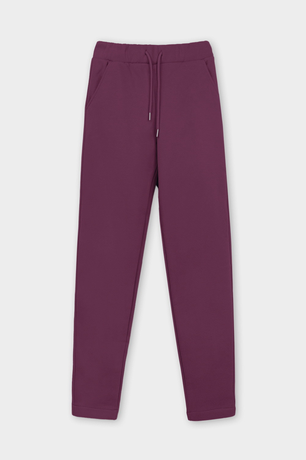Брюки прямого кроя с боковыми карманами из футера трехнитки с начесом. Гладкий и плотный материал на основе хлопка сохраняет форму.
