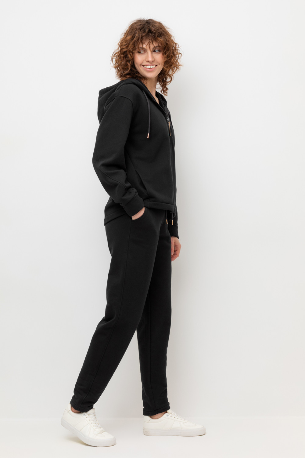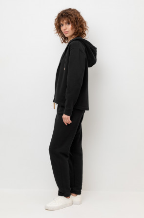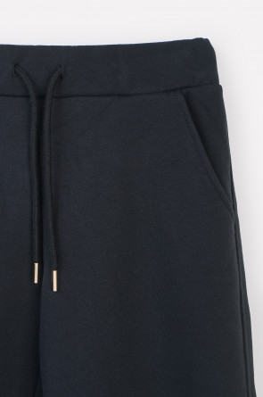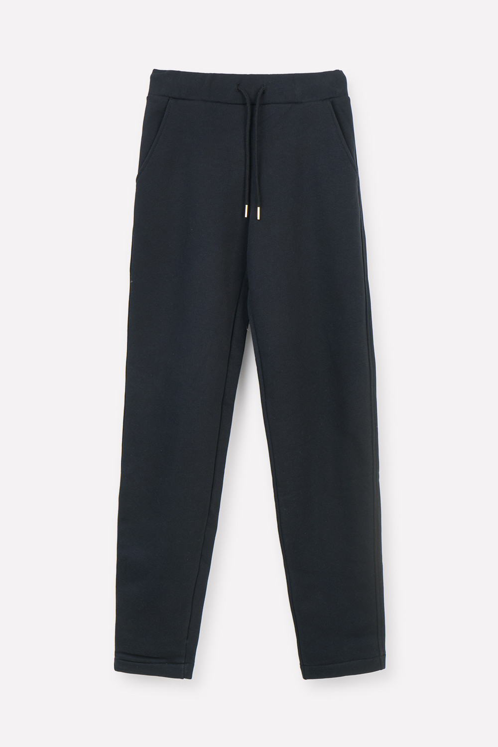 Брюки прямого кроя с боковыми карманами из футера трехнитки с начесом. Гладкий и плотный материал на основе хлопка сохраняет форму.
