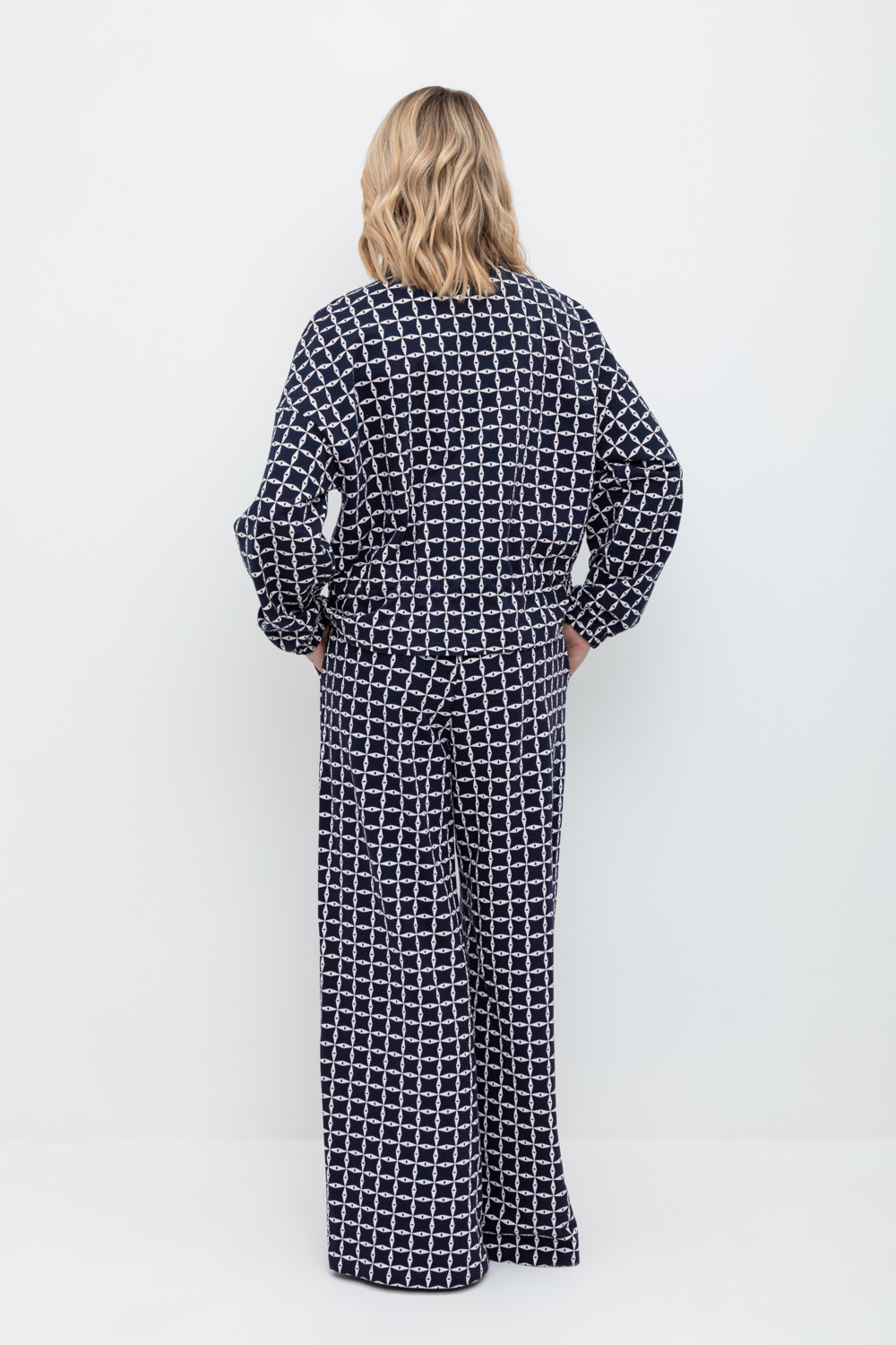 Брюки прямого свободного кроя с боковыми карманами из набивного пике.