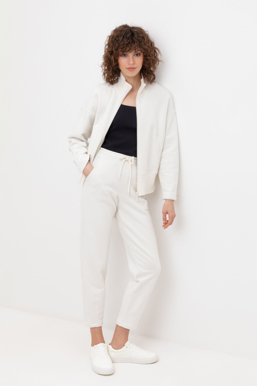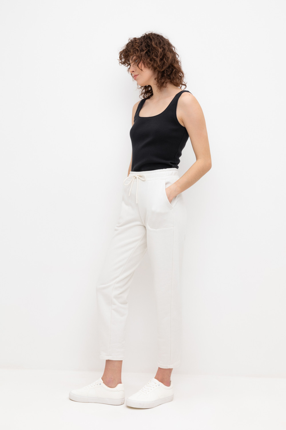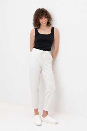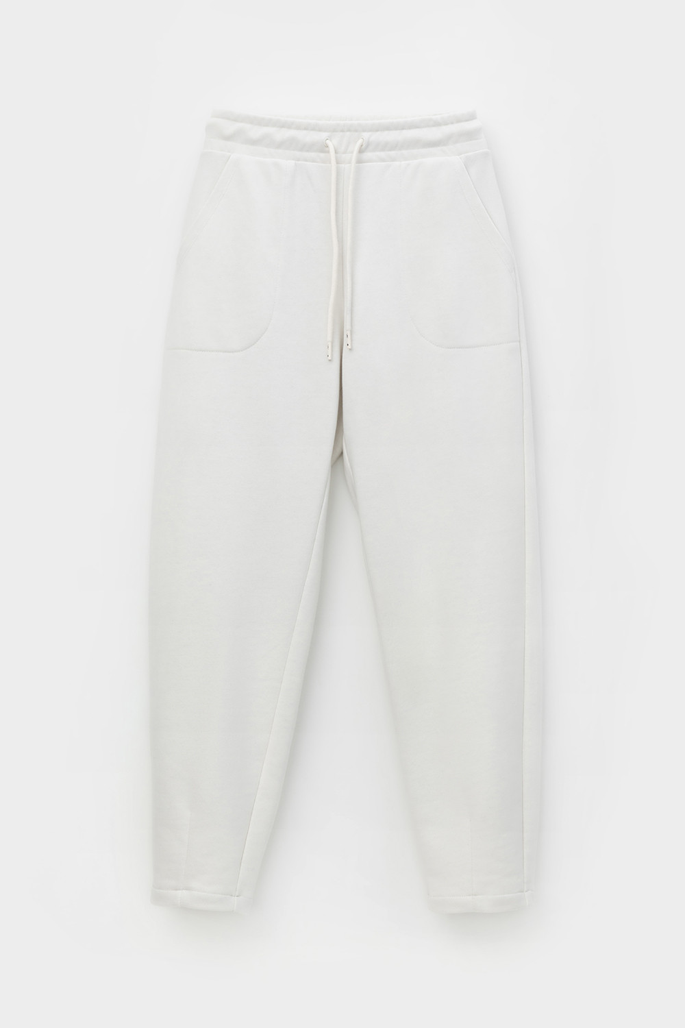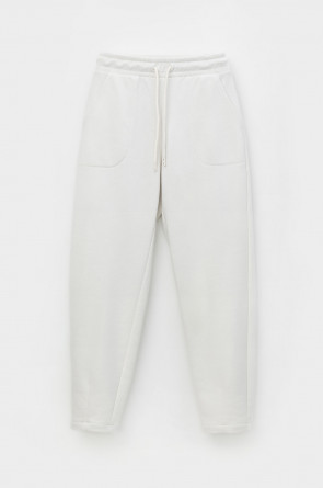 Теплые брюки зауженного кроя с боковыми карманами из мягкого трикотажного футера трёхнитки. Пояс со шнурком позволяет регулировать посадку.