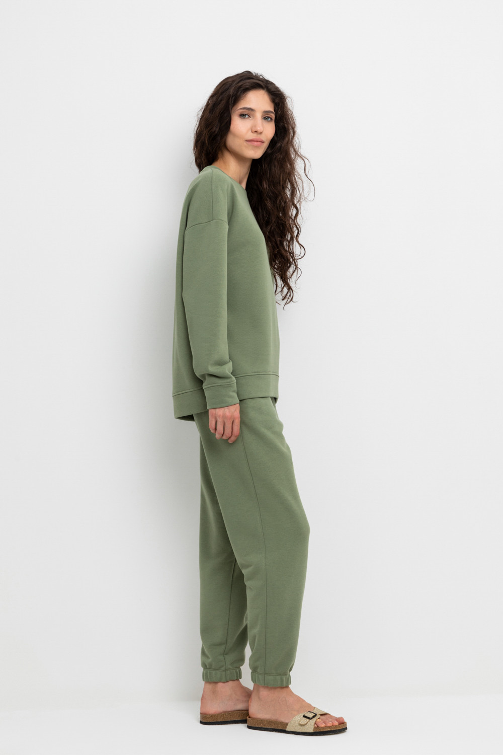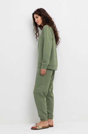 Теплые брюки с манжетами на резинке и боковыми карманами из мягкого трикотажного футера трёхнитки. Пояс со шнурком позволяет регулировать посадку.