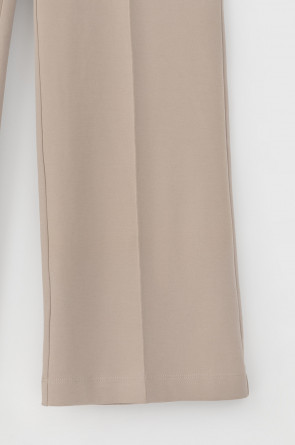 Брюки прямого кроя со стрелкой и боковыми карманами из плотного гладкого трикотажа интерлок. Пояс на резинке обеспечивает комфортную посадку.
