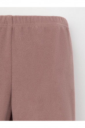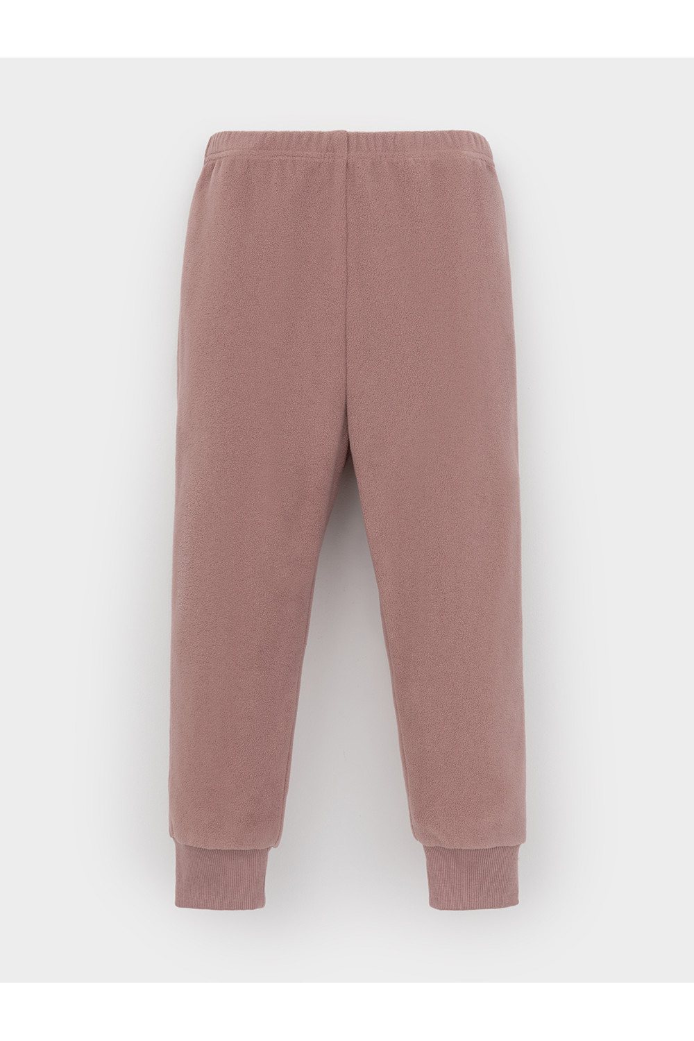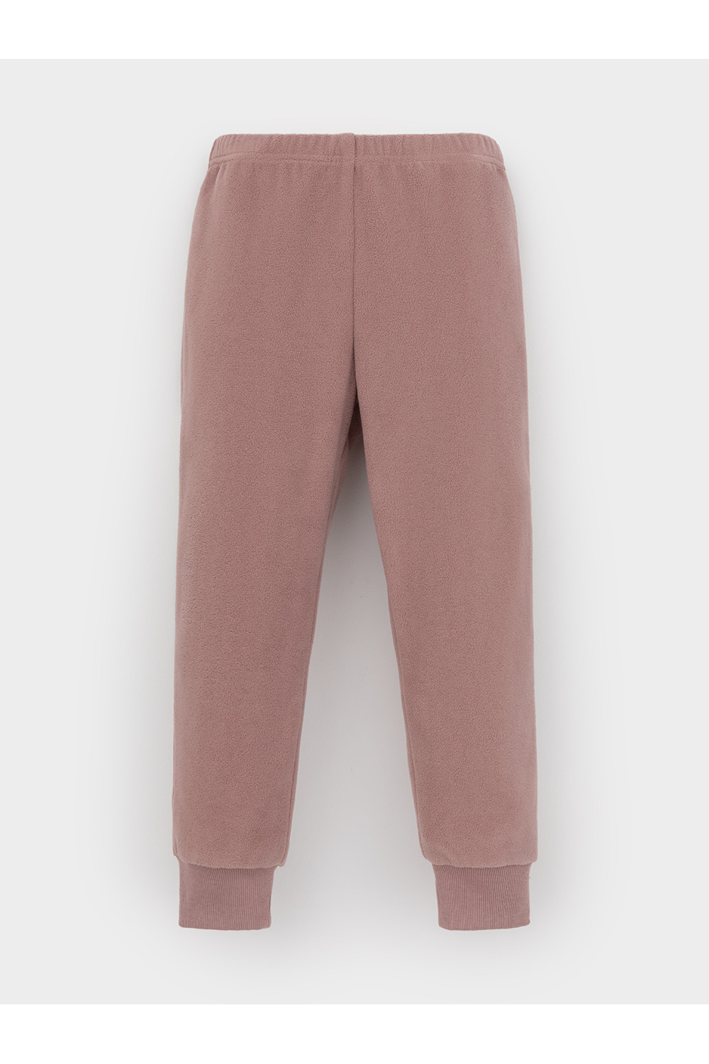 Однотонные детские брюки из флиса с поясом на резинке. Низ изделия на манжетах из эластичного трикотажа в рубчик. Брюки сохраняют цвет и форму после многократных стирок.