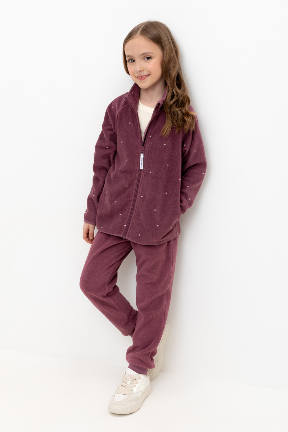 Однотонные детские брюки из флиса с эластичными манжетами. Пояс на резинке. Брюки сохраняют цвет и форму после многократных стирок.