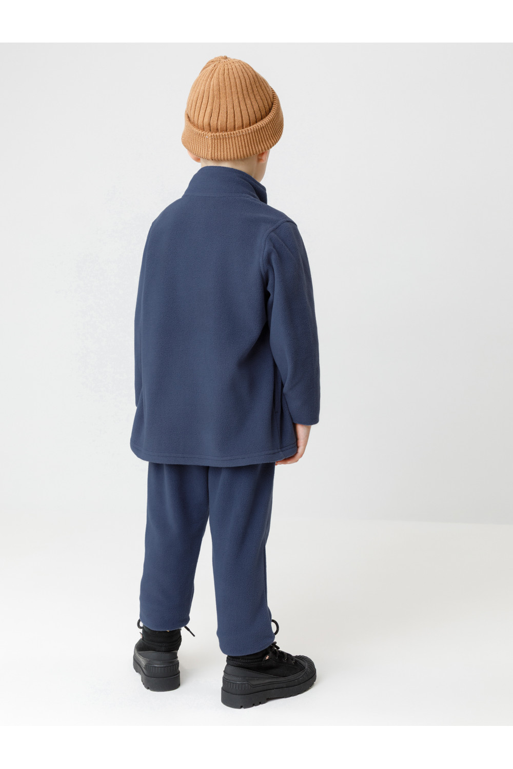 Однотонные детские брюки из флиса с поясом на резинке. Низ изделия на манжетах из эластичного трикотажа в рубчик. Брюки сохраняют цвет и форму после многократных стирок.