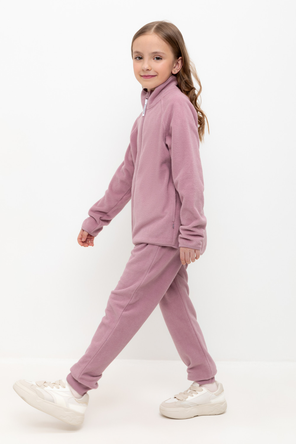 Однотонные детские брюки из флиса с эластичными манжетами. Пояс на резинке. Брюки сохраняют цвет и форму после многократных стирок.