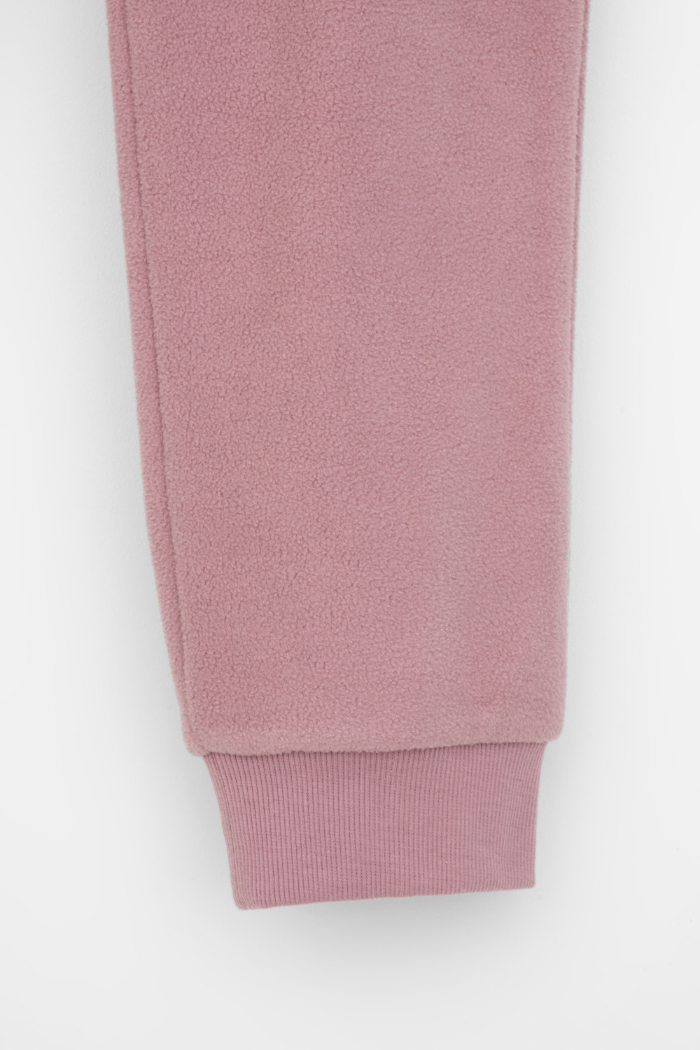 Однотонные детские брюки из флиса с эластичными манжетами. Пояс на резинке. Брюки сохраняют цвет и форму после многократных стирок.