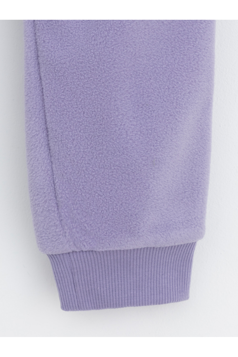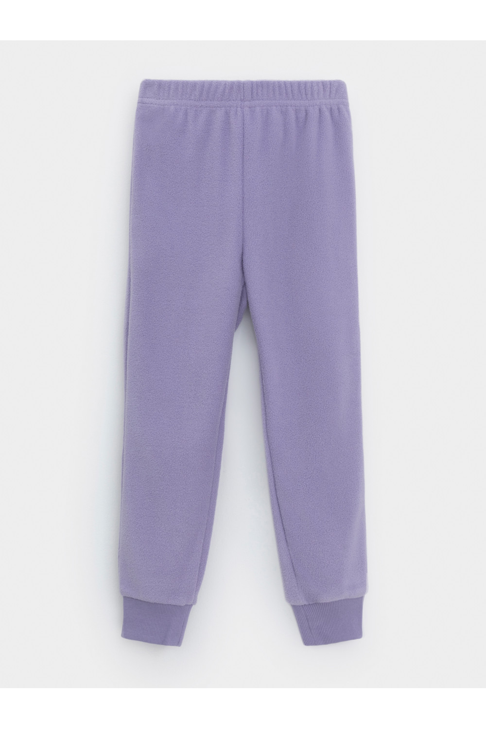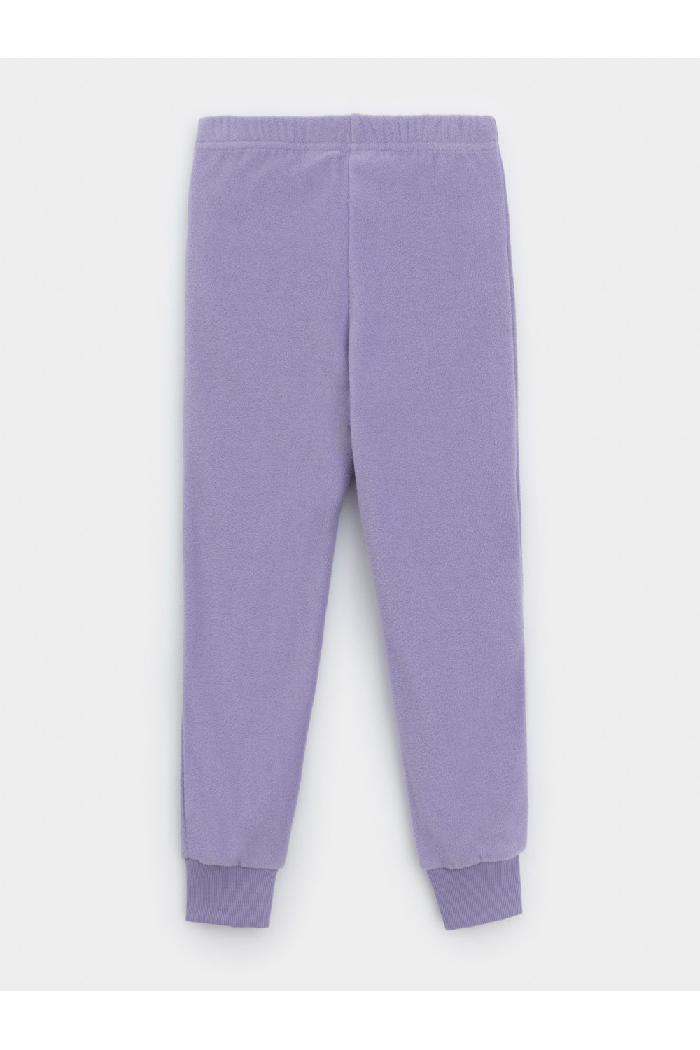 Однотонные детские брюки из флиса с поясом на резинке. Низ изделия на манжетах из эластичного трикотажа в рубчик. Брюки сохраняют цвет и форму после многократных стирок.