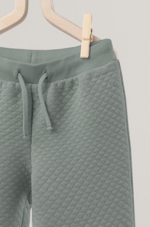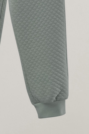 Тёплые брюки из капитония. Капитоний – это стёганое трикотажное полотно с утеплителем из полиэстеровой нити. Изделие имеет мягкие эластичные манжеты и пояс из рибаны. Пояс регулируется по ширине с помощью шнурка. Все трикотажные полотна производятся в соответствии с нормами Швейцарского сертификата ЭкоТекс.
