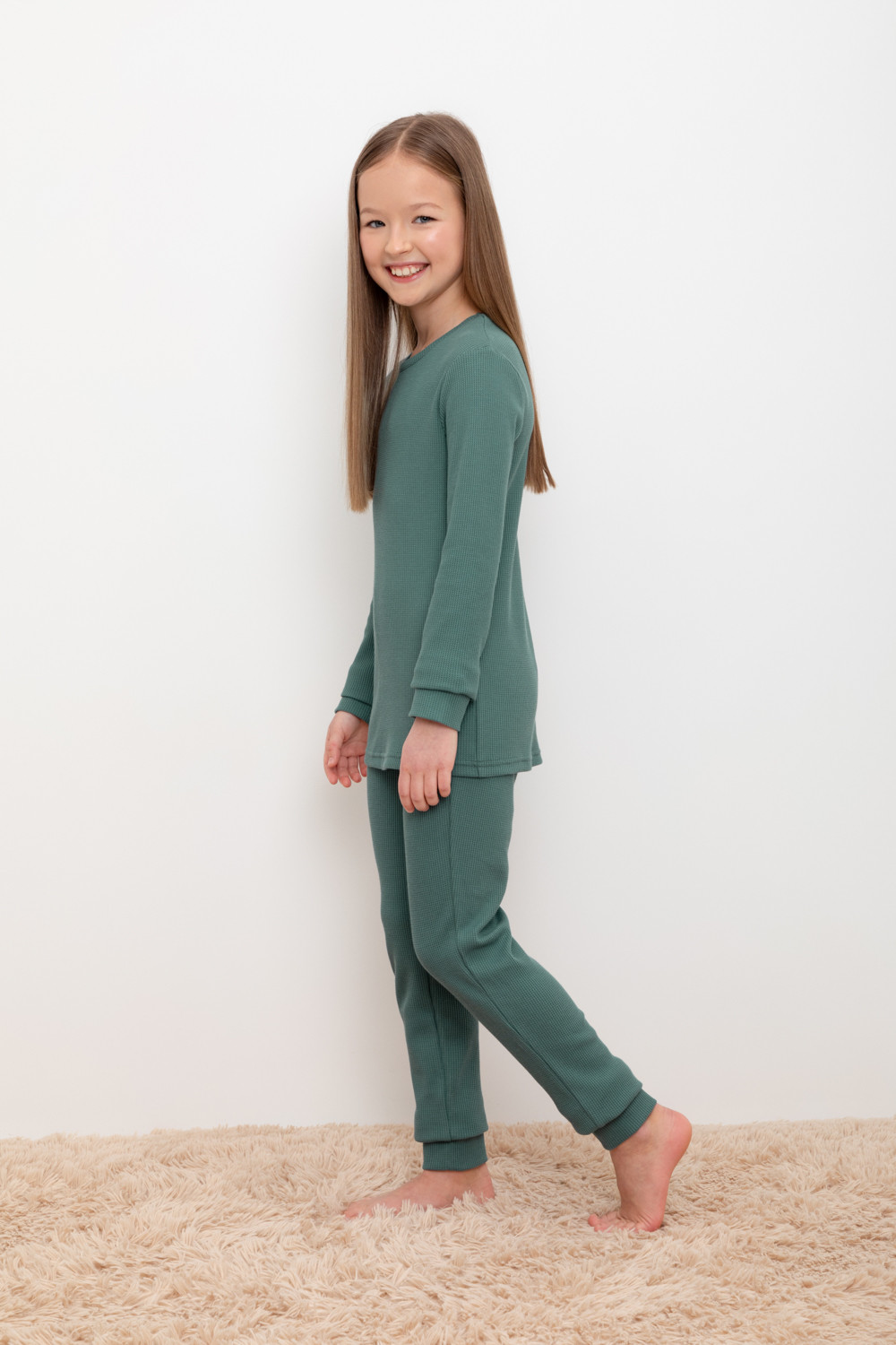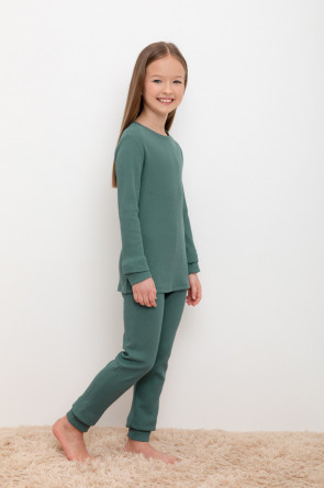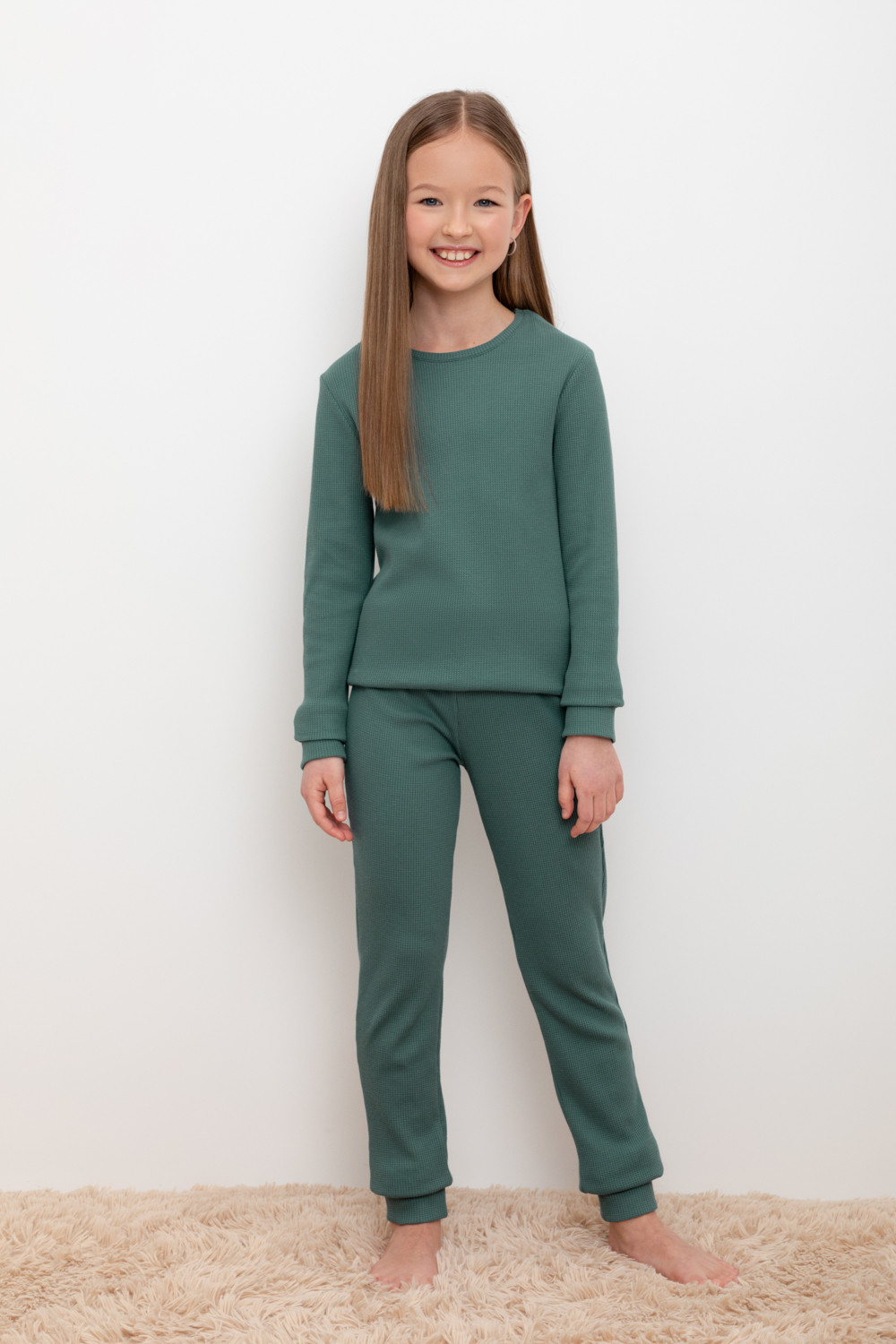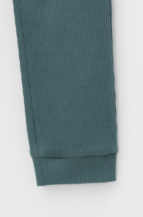 Брюки из вафельного трикотажного полотна с удобным поясом на резинке и эластичными манжетами. Изделие сохраняет цвет и форму после многократных стирок. Все трикотажные полотна производятся в соответсвии с нормами Швейцарского сертификата ЭкоТекс.