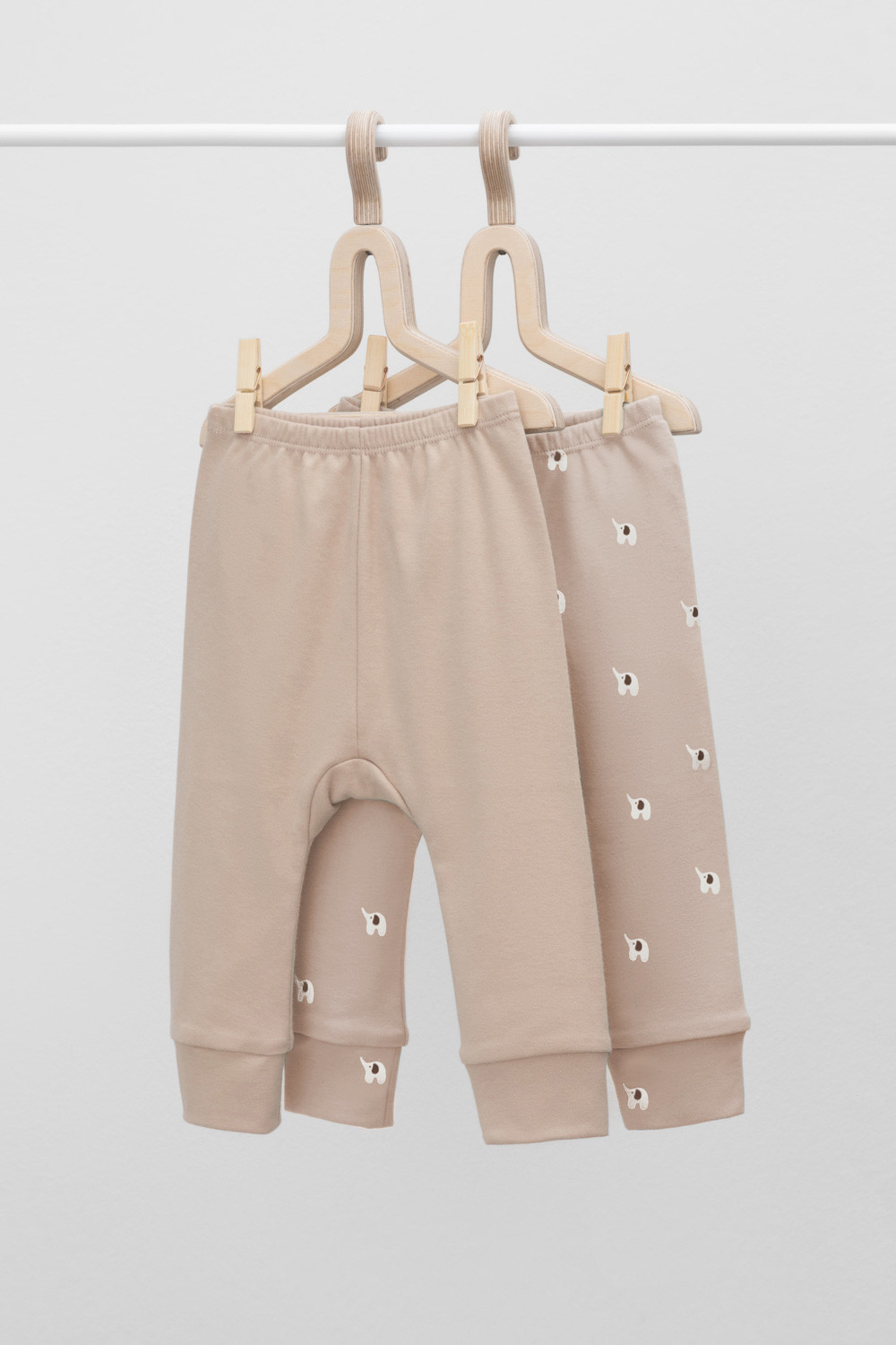 Брюки в упаковке 2 шт для новорождённых из мягкого, эластичного трикотажа, произведенного из натурального хлопка. Пояс на резинке. Оригинальная набивка выполнена из стойких, гипоаллергенных текстильных красителей. Все трикотажные полотна производятся в соответсвии с нормами Швейцарского сертификата ЭкоТекс.