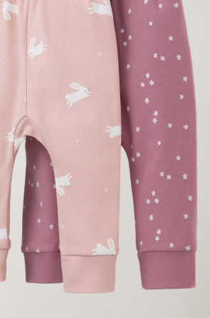 Брюки для новорождённых из мягкого эластичного трикотажа интерлок, произведённого из натурального хлопка. В упаковке 2 штуки. Пояс на резинке. Оригинальная набивка выполнена из стойких гипоаллергенных текстильных красителей. Все трикотажные полотна производятся в соответствии с нормами Швейцарского сертификата ЭкоТекс.