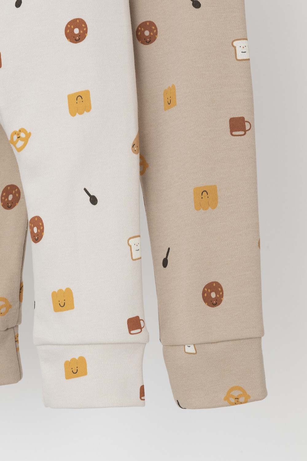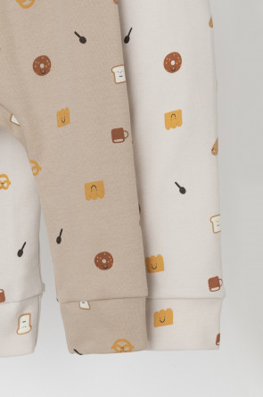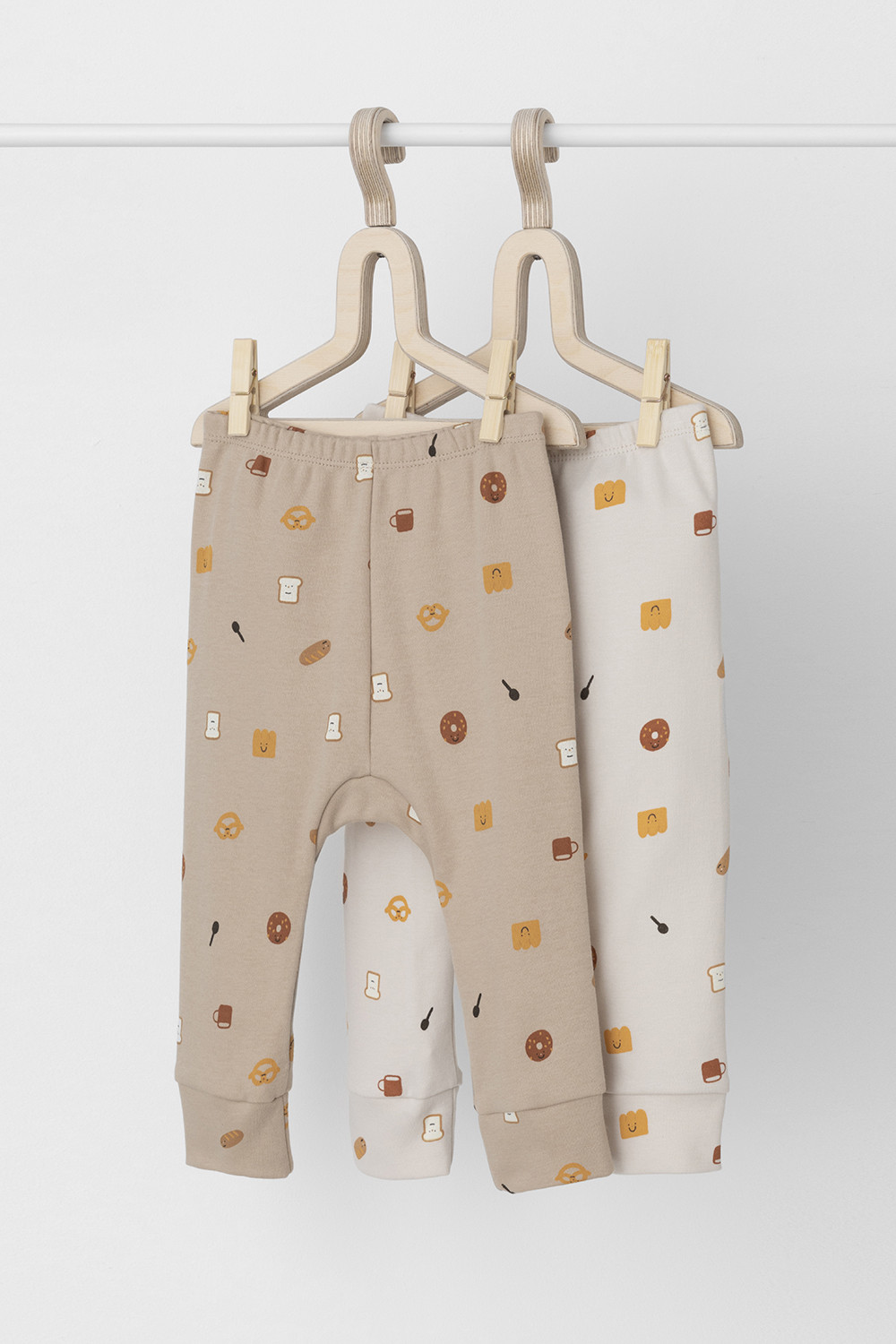 Брюки в упаковке 2 шт для новорождённых из мягкого, эластичного трикотажа, произведенного из натурального хлопка. Пояс на резинке. Оригинальная набивка выполнена из стойких, гипоаллергенных текстильных красителей. Все трикотажные полотна производятся в соответсвии с нормами Швейцарского сертификата ЭкоТекс.