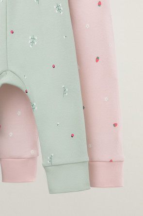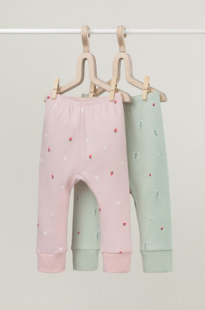 Брюки для новорождённых из мягкого эластичного трикотажа интерлок, произведённого из натурального хлопка. В упаковке 2 штуки. Пояс на резинке. Оригинальная набивка выполнена из стойких гипоаллергенных текстильных красителей. Все трикотажные полотна производятся в соответствии с нормами Швейцарского сертификата ЭкоТекс.