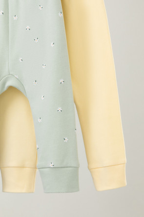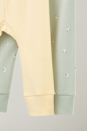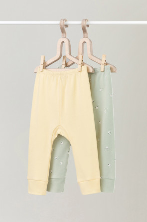 Брюки для новорождённых из мягкого эластичного трикотажа интерлок, произведённого из натурального хлопка. В упаковке 2 штуки. Пояс на резинке. Оригинальная набивка выполнена из стойких гипоаллергенных текстильных красителей. Все трикотажные полотна производятся в соответствии с нормами Швейцарского сертификата ЭкоТекс.