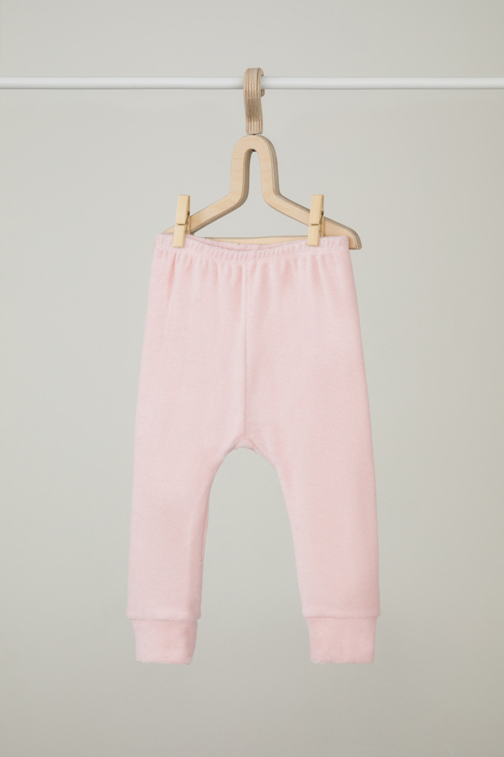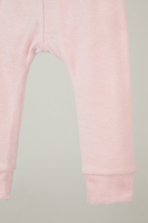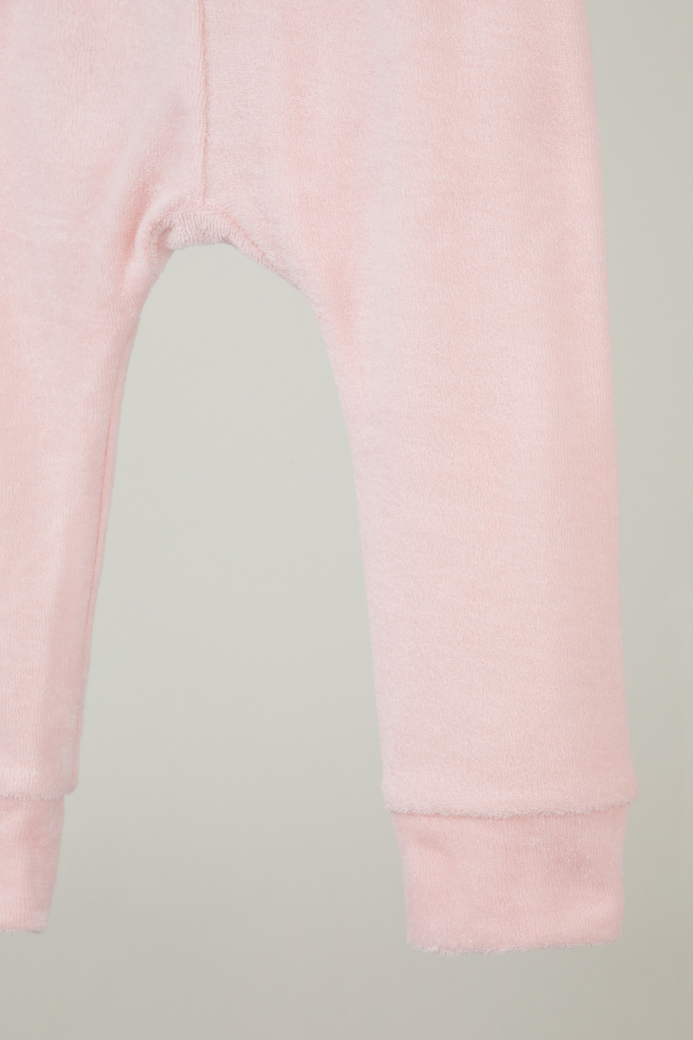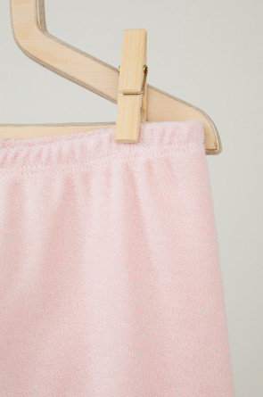 Брюки детские однотонные из махрового трикотажного полотна, в поясе эластичная тесьма, по низу манжеты.
