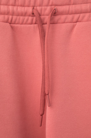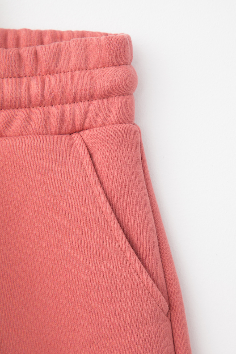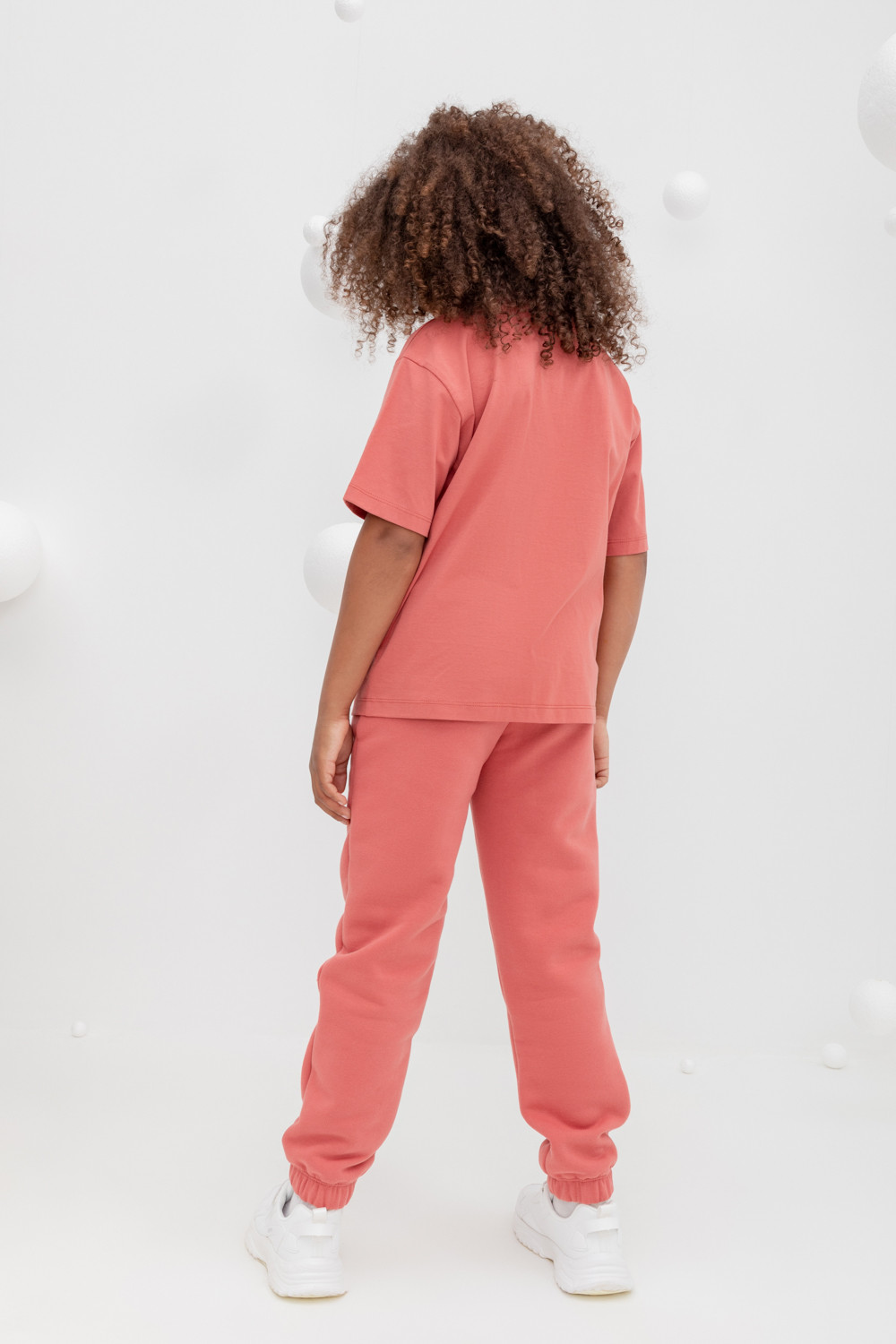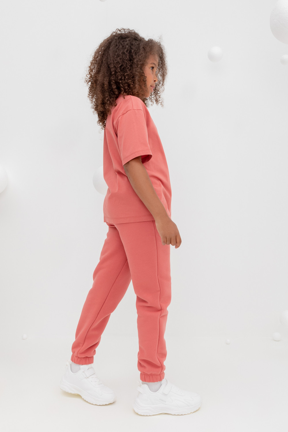 Трикотажные брюки для девочки из петельчатого футера. В составе 80% натурального хлопка и 20% полиэстера, при этом полиэстер ввязан внутрь по особой технологии и не соприкасается с кожей. Эластичный пояс на резинке регулируется по ширине с помощью шнурка, по бокам два удобных кармана, внизу эластичная резинка.