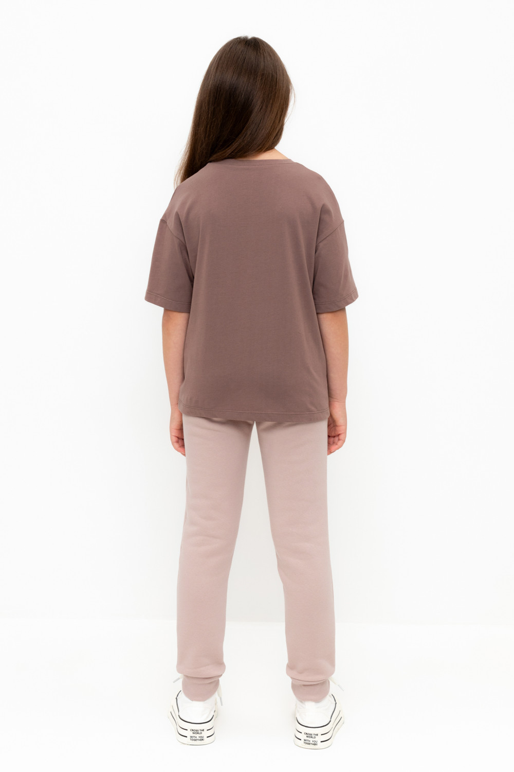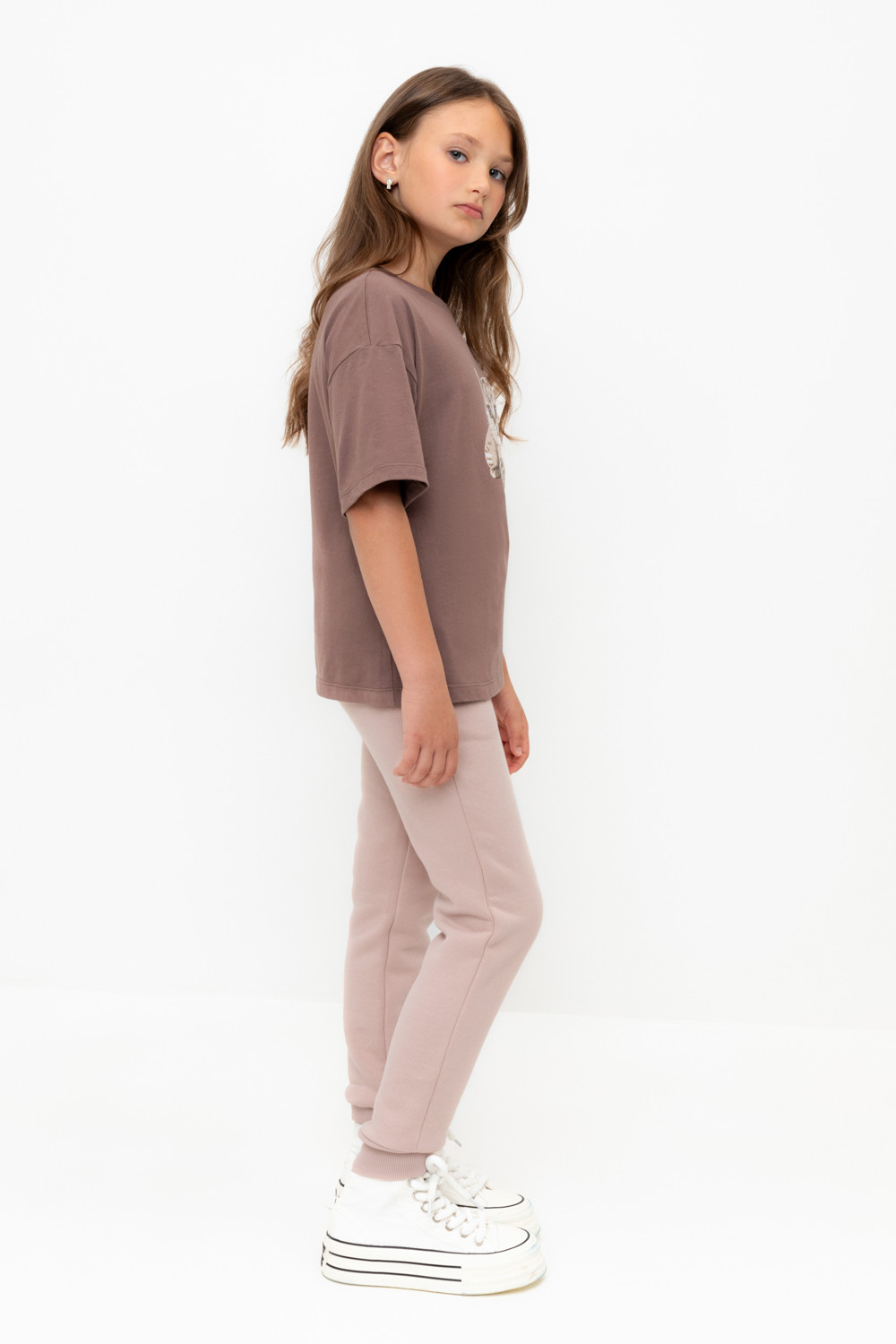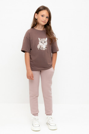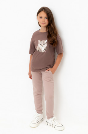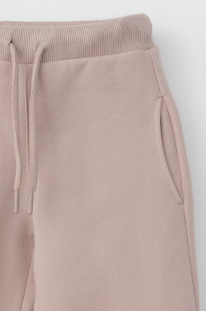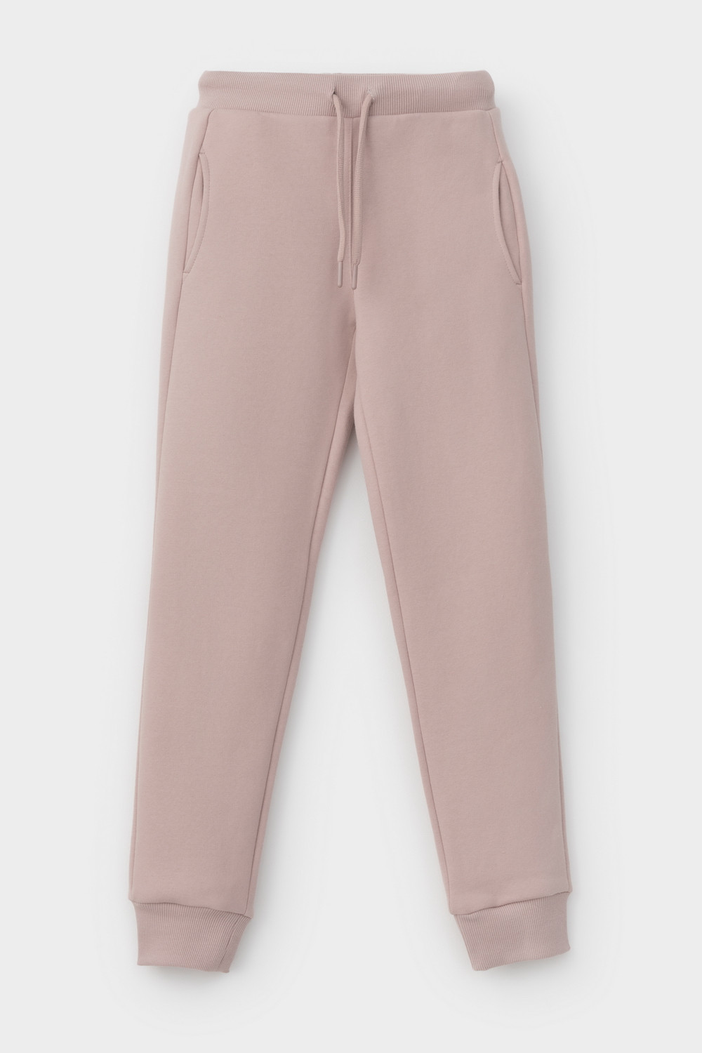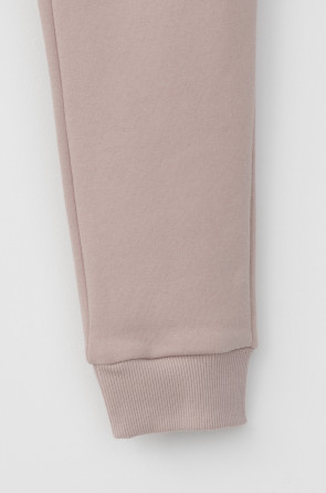 Трикотажные брюки для девочки из футера трехнитки с начесом. Эластичный пояс на резинке регулируется по ширине с помощью шнурка, по бокам два удобных кармана, внизу эластичные манжеты.