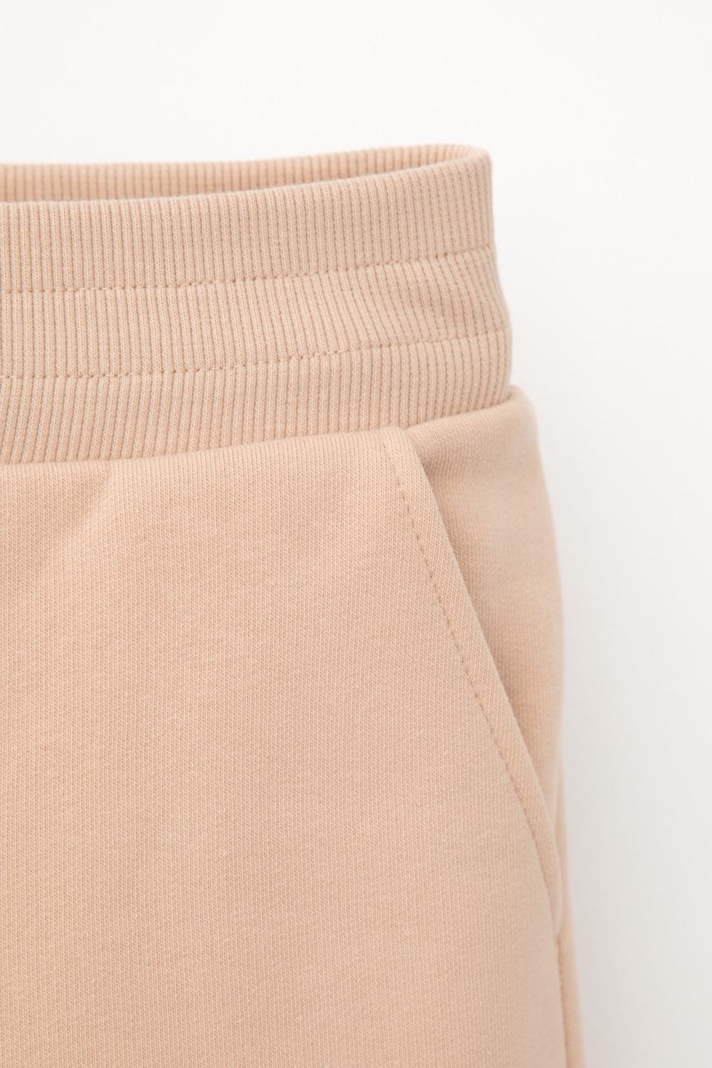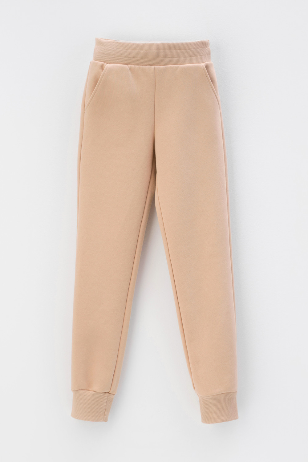 Трикотажные брюки для девочки из футера с начёсом. В составе 80% натурального хлопка и 20% полиэстера, при этом полиэстер ввязан внутрь по особой технологии и не соприкасается с кожей. Эластичный пояс на резинке, по бокам два удобных кармана, внизу эластичные манжеты.