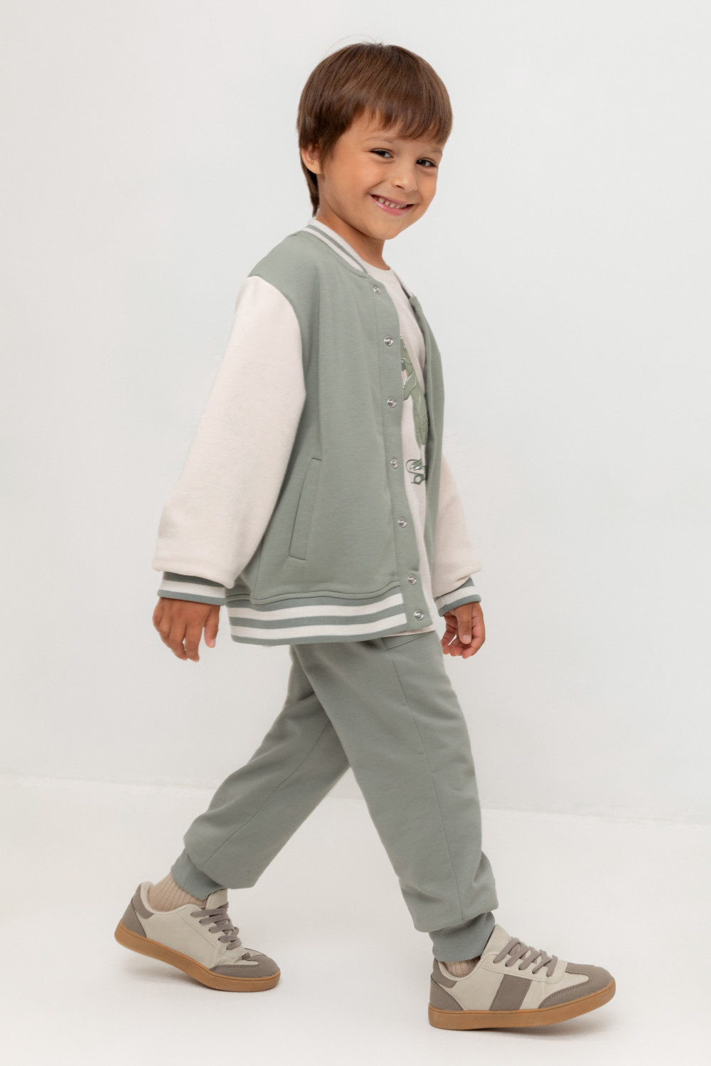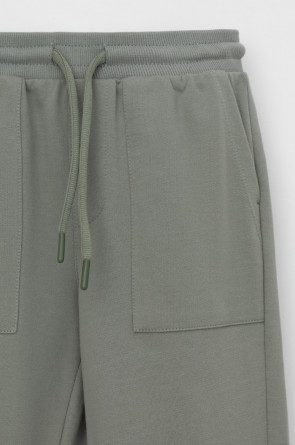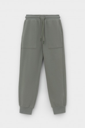 Брюки для мальчика из мягкого петельчатого трикотажа. Эластичный пояс на резинке регулируется по ширине с помощью шнурка. По бокам два удобных накладных кармана. Внизу эластичные манжеты.