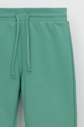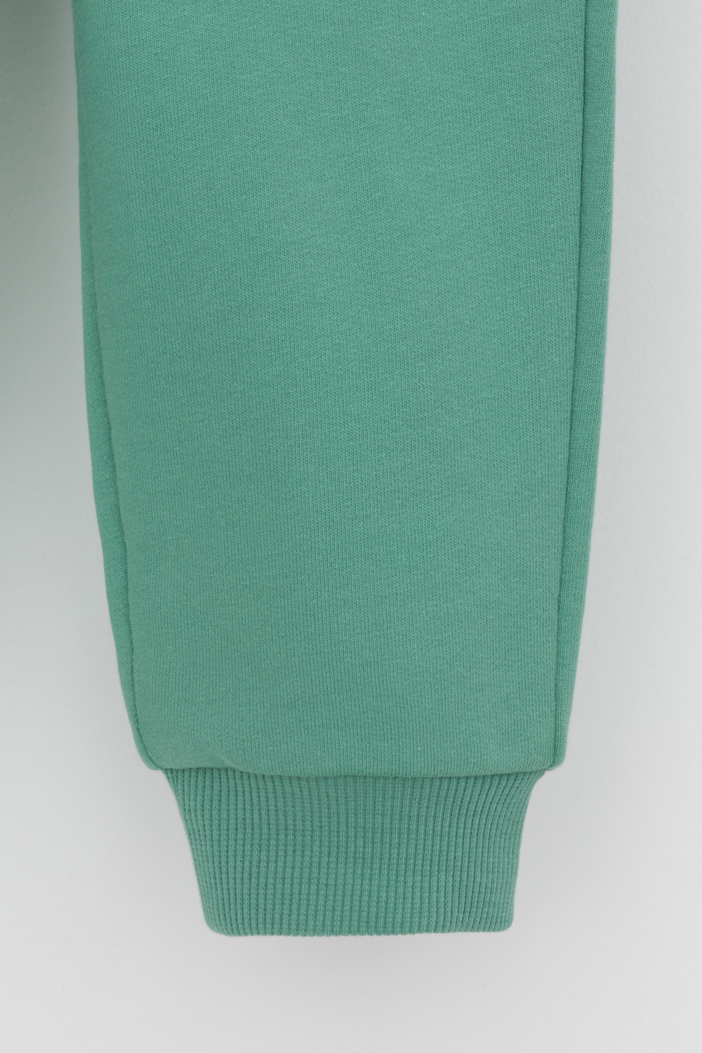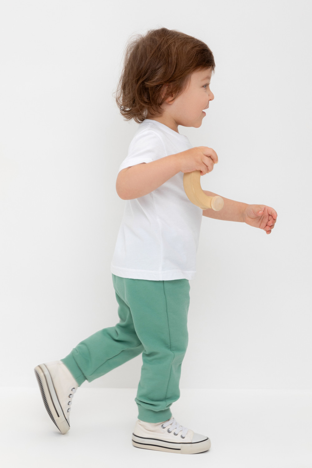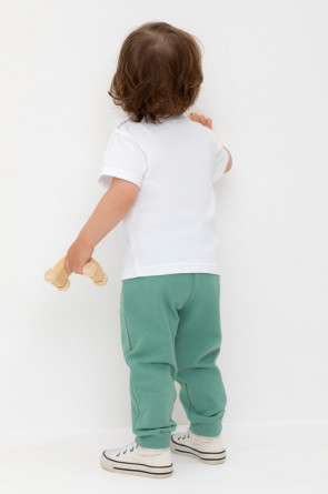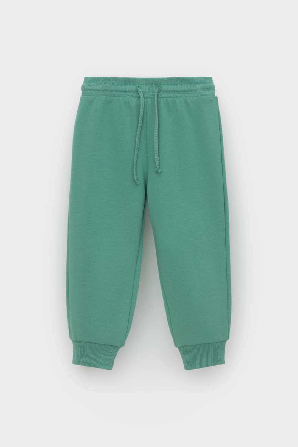 Брюки для мальчика из высококачественного трикотажного полотна футер петля. Пояс на резинке регулируется по ширине с помощью шнурка. Внизу эластичные манжеты.
