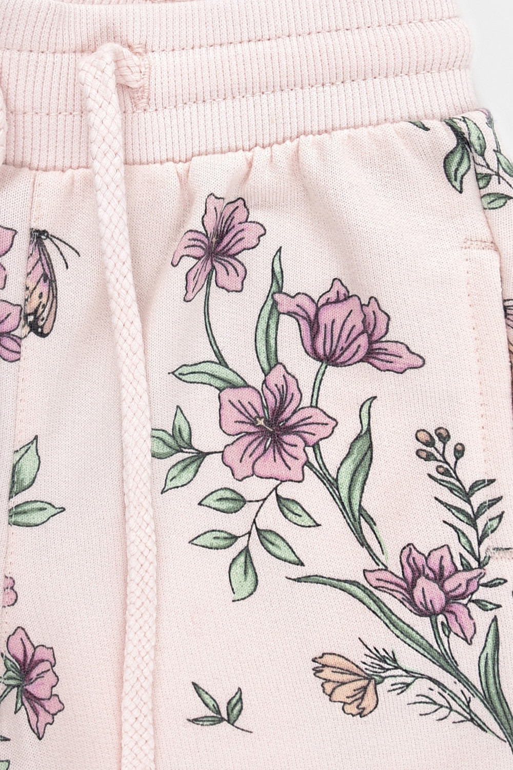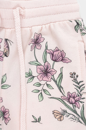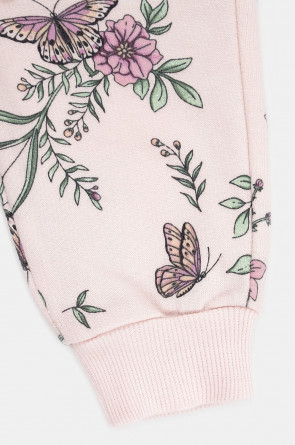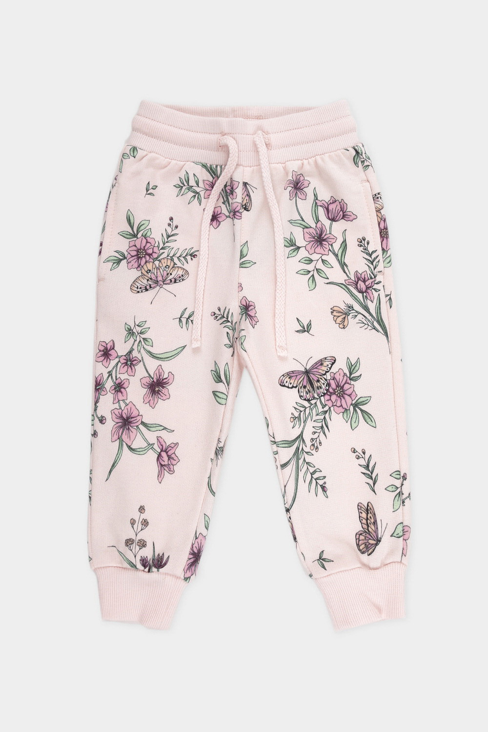 Брюки для девочки из мягкого петельчатого трикотажа. Эластичный пояс на резинке регулируется по ширине с помощью шнурка, по бокам два удобных кармана, внизу эластичные манжеты. Оригинальная набивка выполнена из стойких текстильных гипоаллергенных красителей. Изделие сохраняет цвет и форму после многократных стирок.