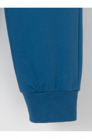 Трикотажные брюки для мальчика из петельчатого футера. Эластичный пояс на резинке регулируется по ширине с помощью шнурка. По бокам два удобных кармана. Внизу эластичные манжеты на резинке. Изделие сохраняет цвет и форму после многократных стирок. Все трикотажные полотна производятся в соответствии с нормами швейцарского сертификата ЭкоТекс.