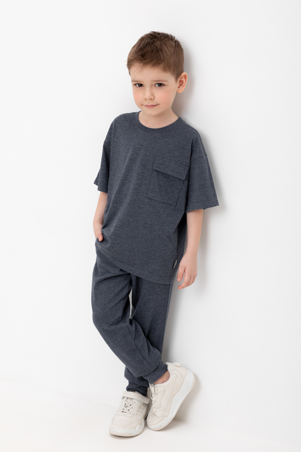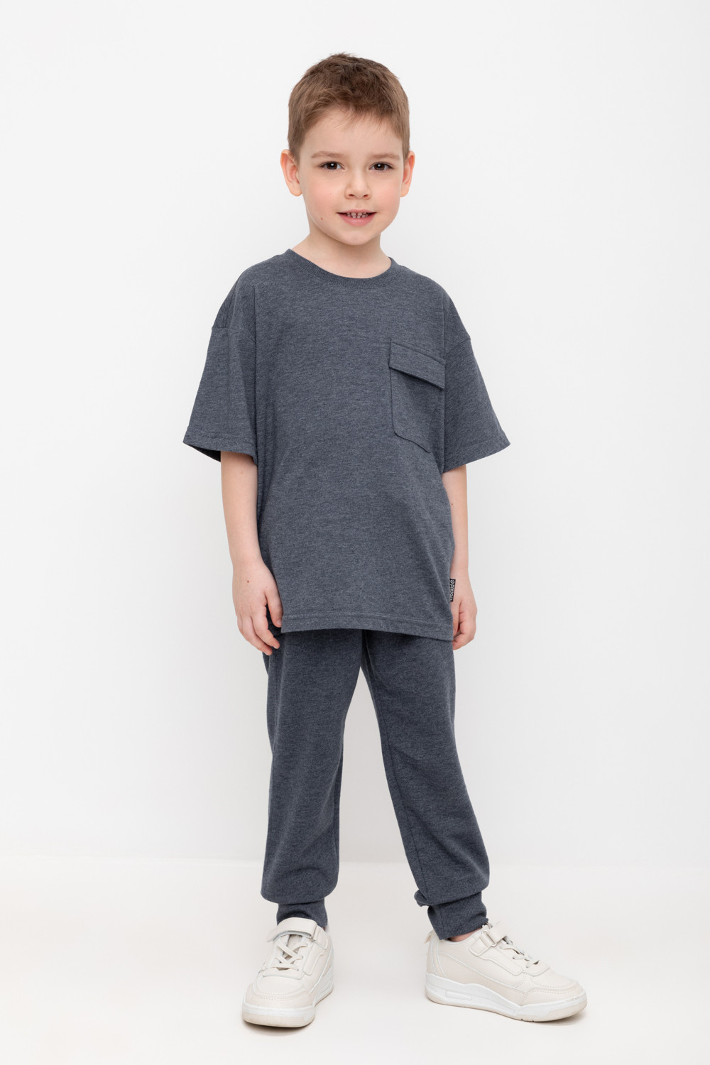 Трикотажные брюки с карманами для мальчика из петельчатого футера. Эластичный пояс на резинке регулируется по ширине с помощью шнурка, по бокам два удобных кармана, внизу эластичные манжеты.