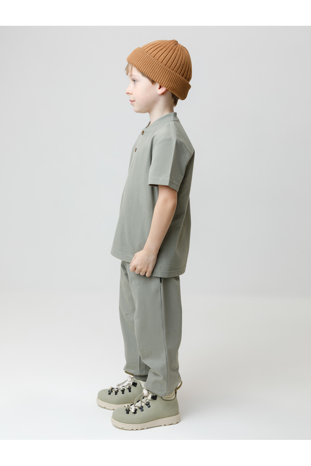 Брюки для мальчика из гладкого трикотажа, произведённого из высококачественного натурального хлопка. Модель с эластичным поясом на резинке и утягивающим шнурком для регулировки по талии. По бокам два удобных кармана. Низ на манжетах. Изделие сохраняет цвет и форму после многократных стирок. Все трикотажные полотна производятся в соответствии с нормами швейцарского сертификата ЭкоТекс.