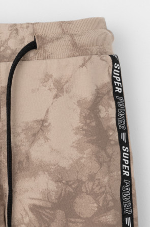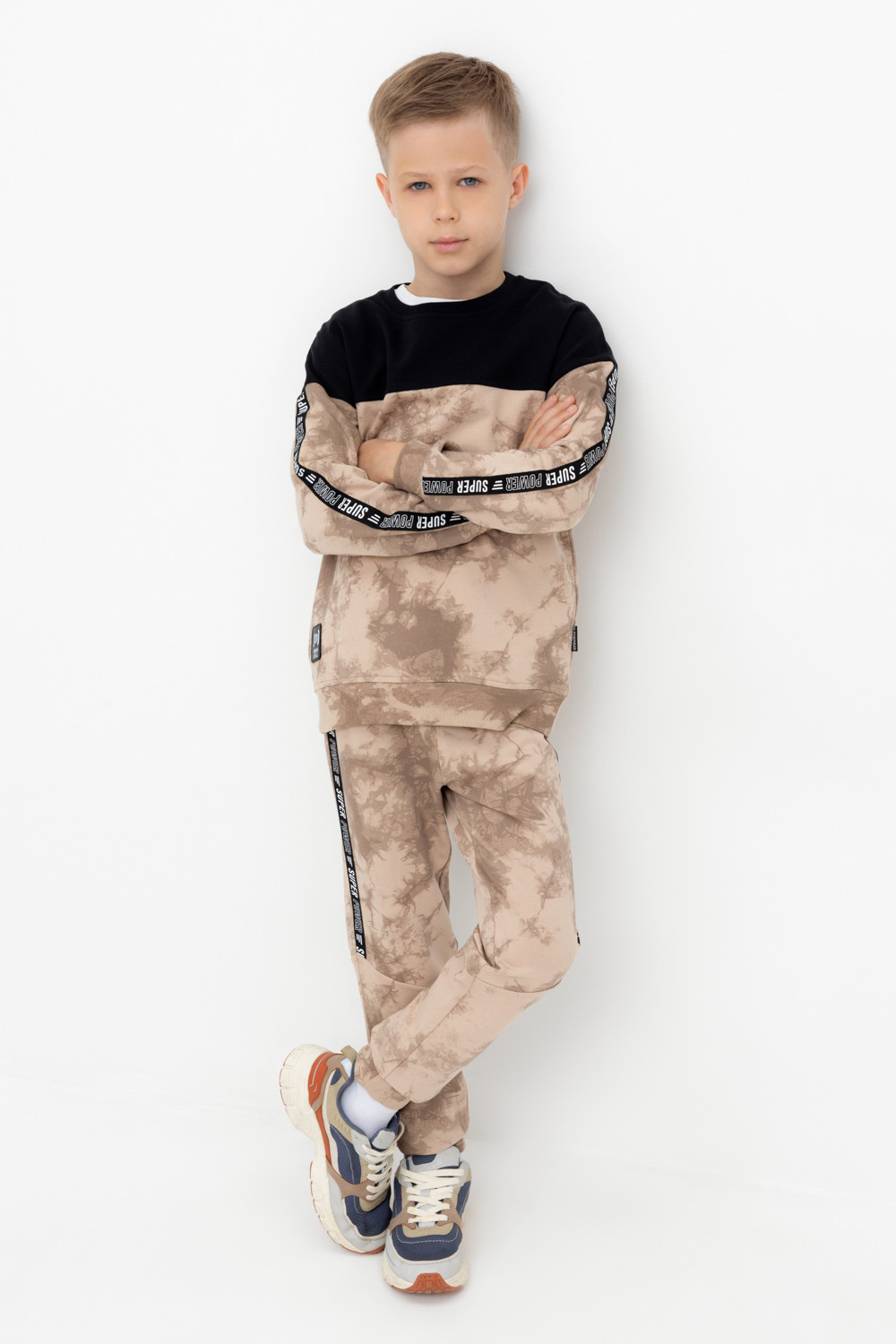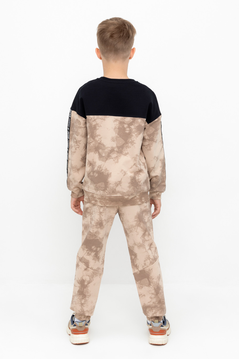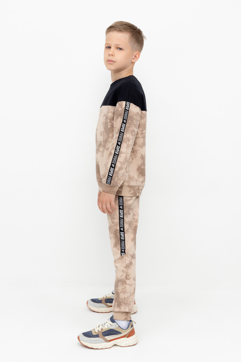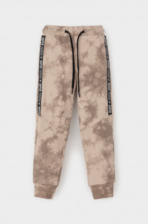 Трикотажные брюки с карманами для мальчика из петельчатого футера диагональ. Эластичный пояс на резинке регулируется по ширине с помощью шнурка, по бокам два удобных кармана, внизу эластичные манжеты.