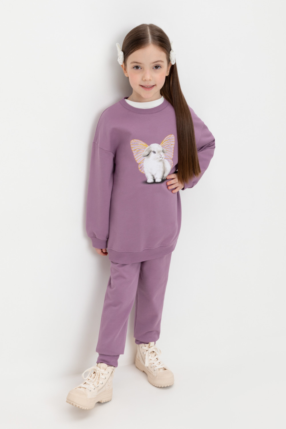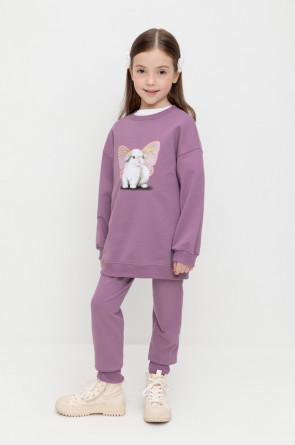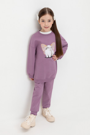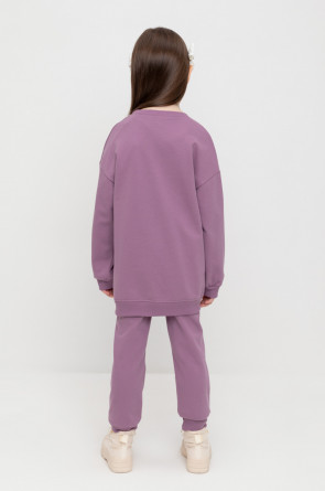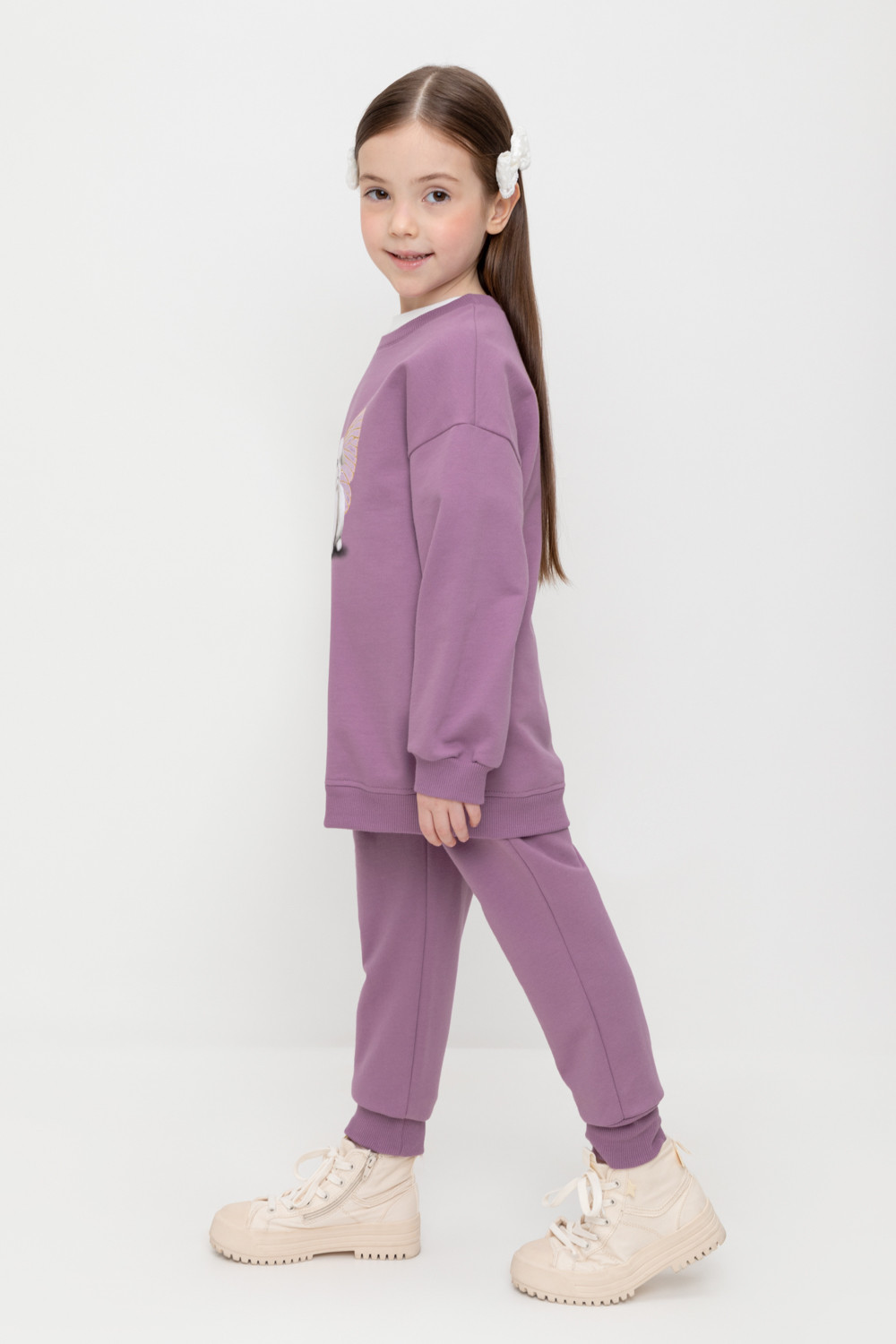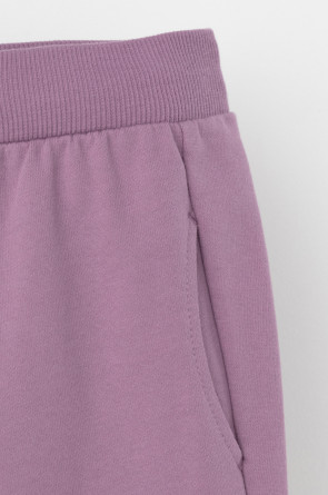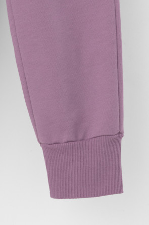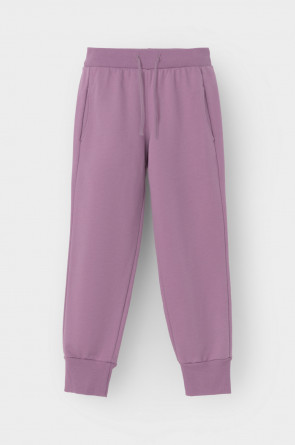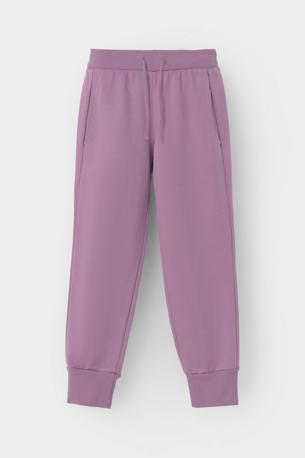 Трикотажные брюки для девочки из футера трехнитки. Эластичный пояс на резинке регулируется по ширине с помощью шнурка, по бокам два удобных кармана, внизу эластичные манжеты.