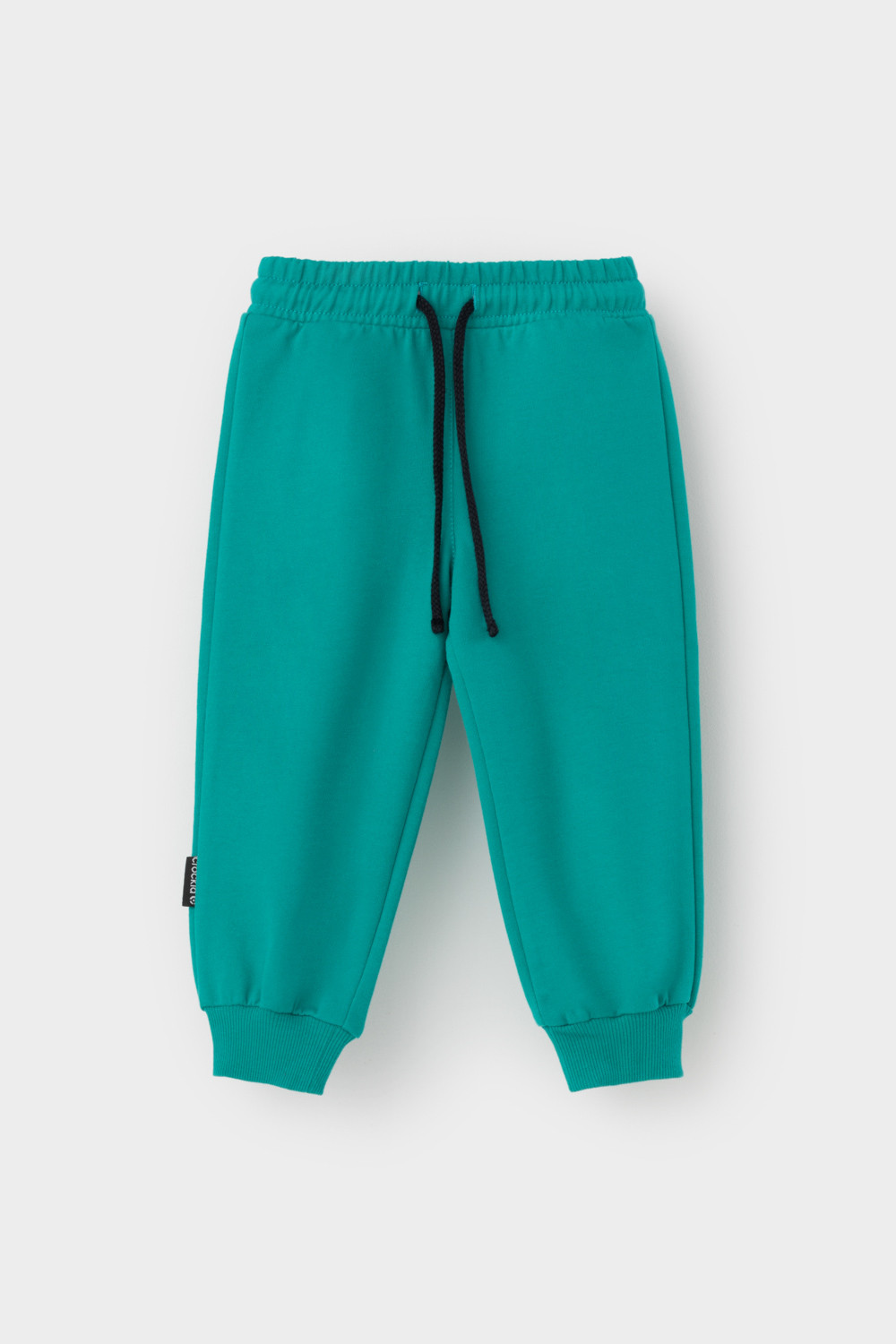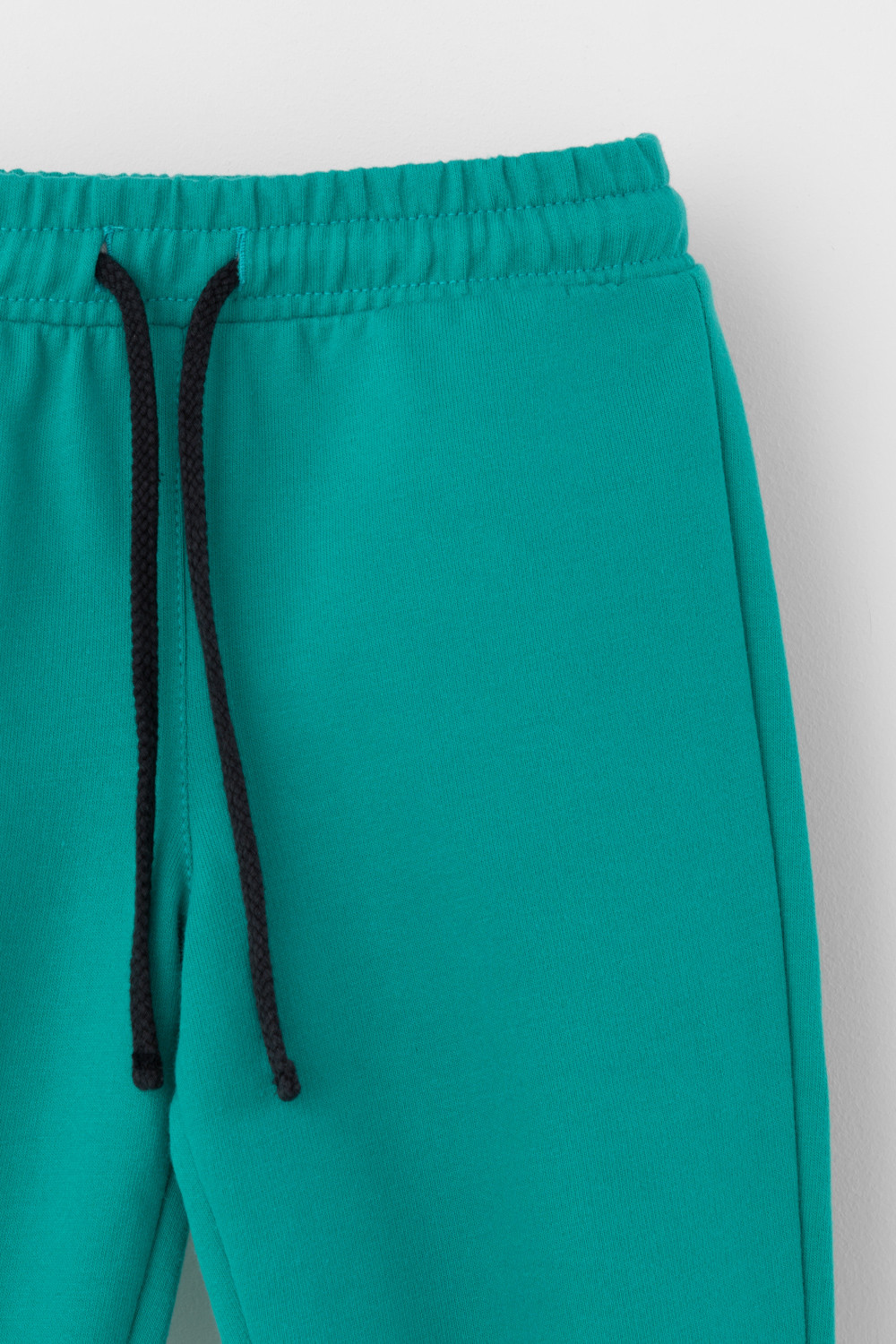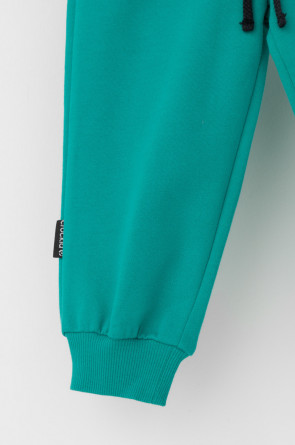 Свободные брюки для мальчика из петельчатого футера. Эластичный пояс на резинке регулируется по ширине с помощью шнурка, внизу эластичные манжеты.