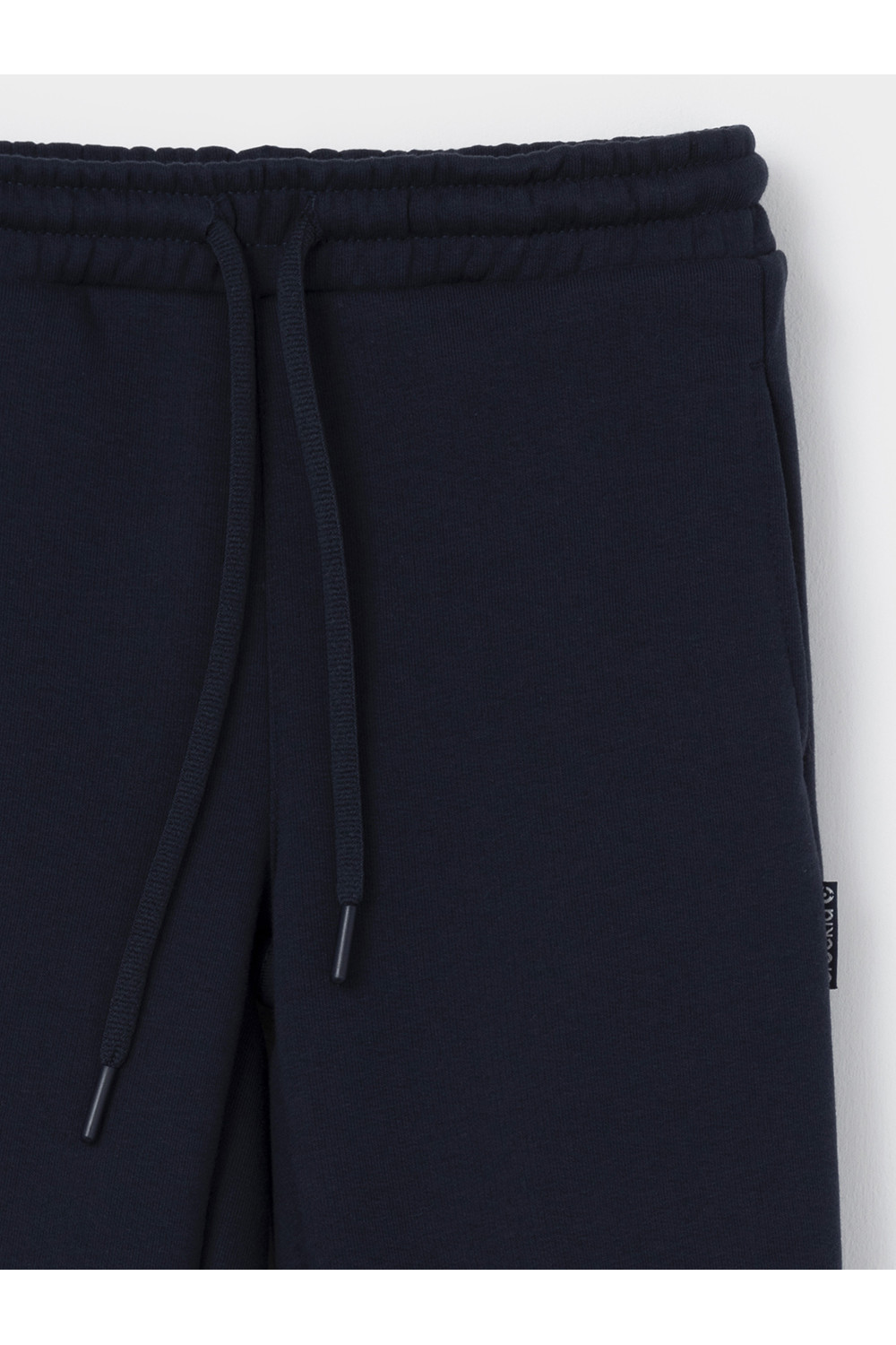 Трикотажные брюки для мальчика из мягкого петельчатого футера. В составе 80% натурального хлопка и 20% полиэстера, при этом полиэстер ввязан внутрь по особой технологии и не соприкасается с кожей. Эластичный пояс на резинке регулируется по ширине с помощью шнурка. Изделие сохраняет цвет и форму после многократных стирок. Все трикотажные полотна производятся в соответствии с нормами швейцарского сертификата ЭкоТекс.